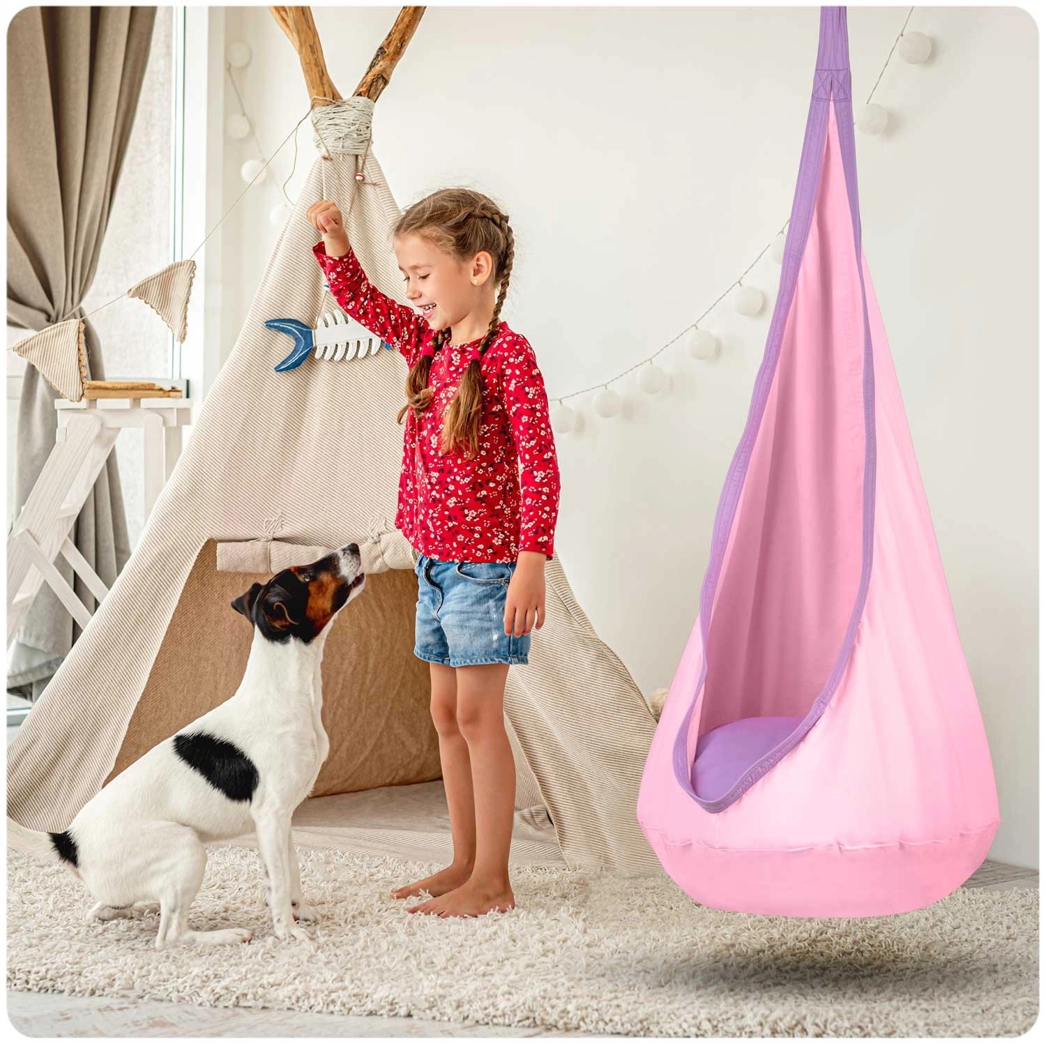 De hangende cocon-zit Neo-Sport creëert voor kinderen een knus hoekje om te lezen, spelen en zachtjes te schommelen. Dankzij de druppelvorm met een zacht kussen biedt hij een aangename, omsluitende zit die ontspanning en concentratie ondersteunt. De slijtvaste stof met meervoudige stiksels en de stevige ophangbevestiging zorgen voor een lange levensduur, zowel binnen als buiten.