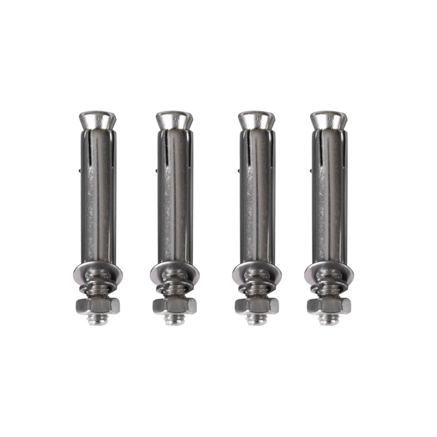 Vier spreidbouten met ringen en moeren voor betrouwbare verankering in beton of volle baksteen.