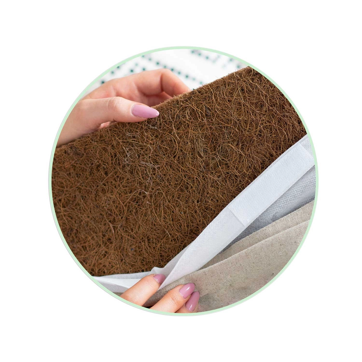 Kokosvezel is hygiënisch, ademend en duurzaam. Het biedt stabiele ondersteuning aan het lichaam en draagt bij aan de lange levensduur van de hele mat.