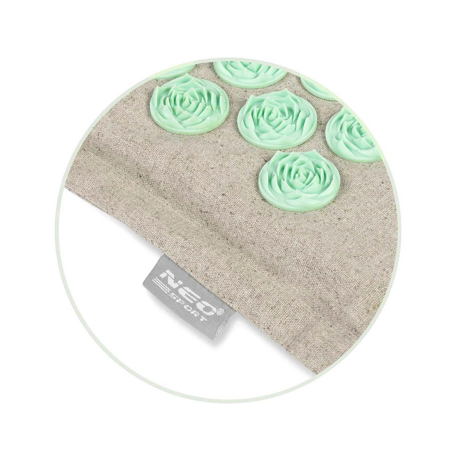 De acupressuurmat NEo-SPORT in grijs–mint is ontworpen voor dagelijkse ontspanning thuis en herstel na het sporten. De dicht geplaatste rozetten activeren drukpunten, bevorderen de doorbloeding, verlichten spierspanning en kunnen helpen bij rug-, nek- en hoofdpijn of stress. Dankzij de natuurlijke kern van kokosvezel blijft de mat ademend, hygiënisch en stabiel.