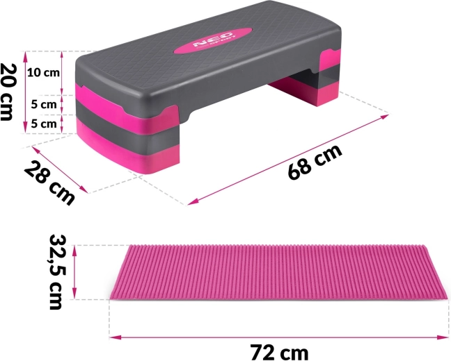 De aerobic step NEO-SPORT biedt veelzijdige training voor zowel beginners als gevorderden. Dankzij drie instelbare niveaus pas je eenvoudig de intensiteit aan – van dynamische cardio tot krachtoefeningen en balansoefeningen. Het antislipoppervlak en de zekere afzet garanderen veilige beweging, ook in hoog tempo.