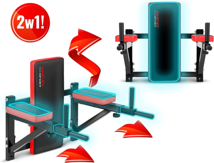NEO SPORT NS-320 is een betrouwbare wandstation voor dips en knie-/beenheffen, die je helpt om de core te versterken, armen en rug te definiëren en calorieën te verbranden. Het robuuste stalen frame, de dikke bekleding van de rugleuning en armsteunen en vier antislipgrepen zorgen voor stabiliteit en comfort, zelfs bij intensieve trainingen.