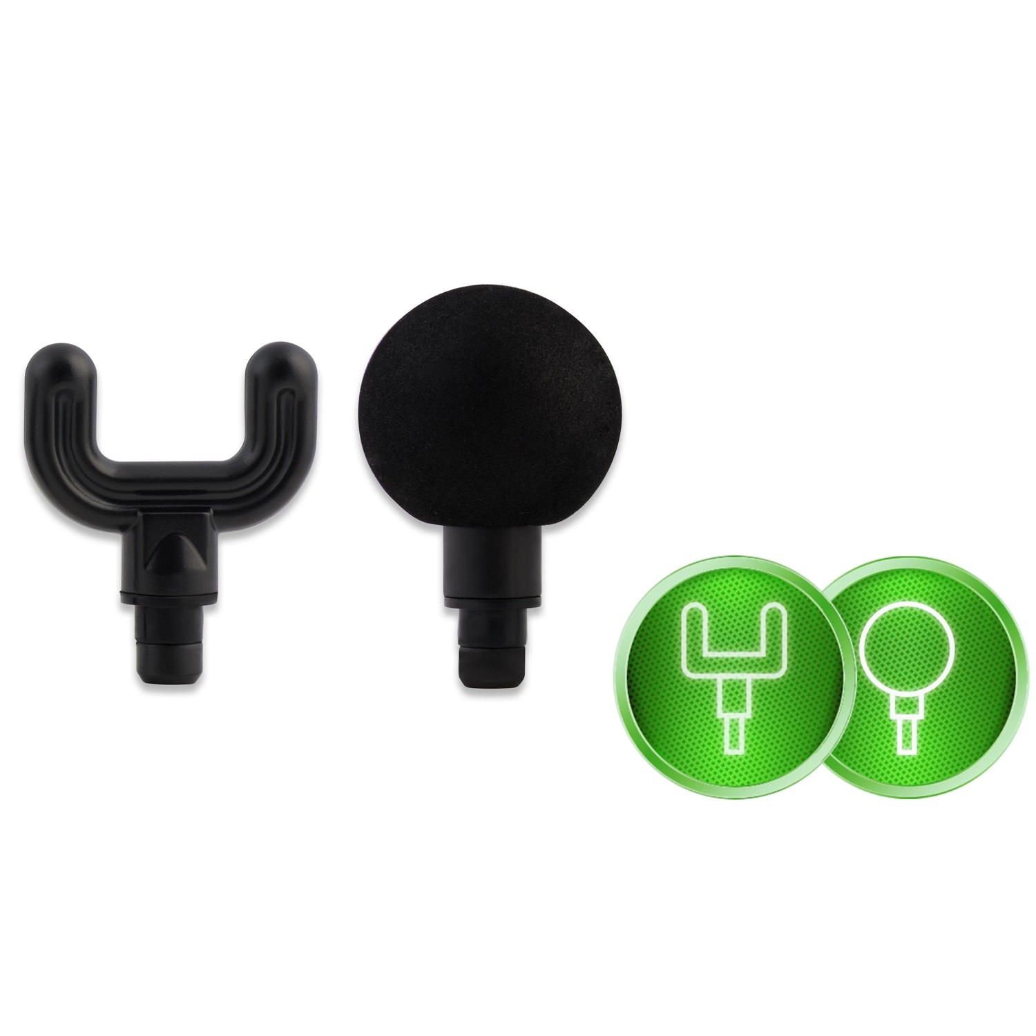 Bolvormige, U‑vork, platte en spitse kop plus een massageband dekken alles af: van grote spiergroepen tot precieze triggerpoints.