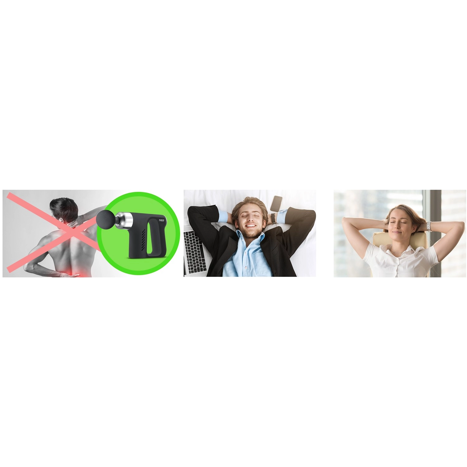 Een krachtige maar stille motor met tot 3000 tpm ontspant stijve spieren, verbetert de doorbloeding en versnelt het herstel na sport of een intensieve dag.
