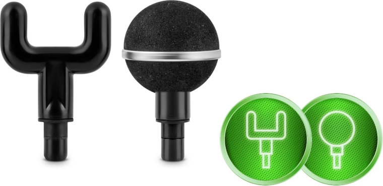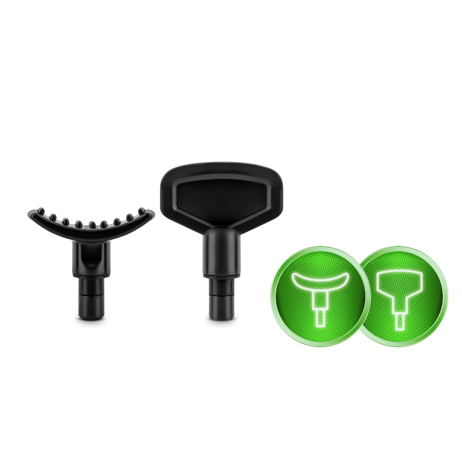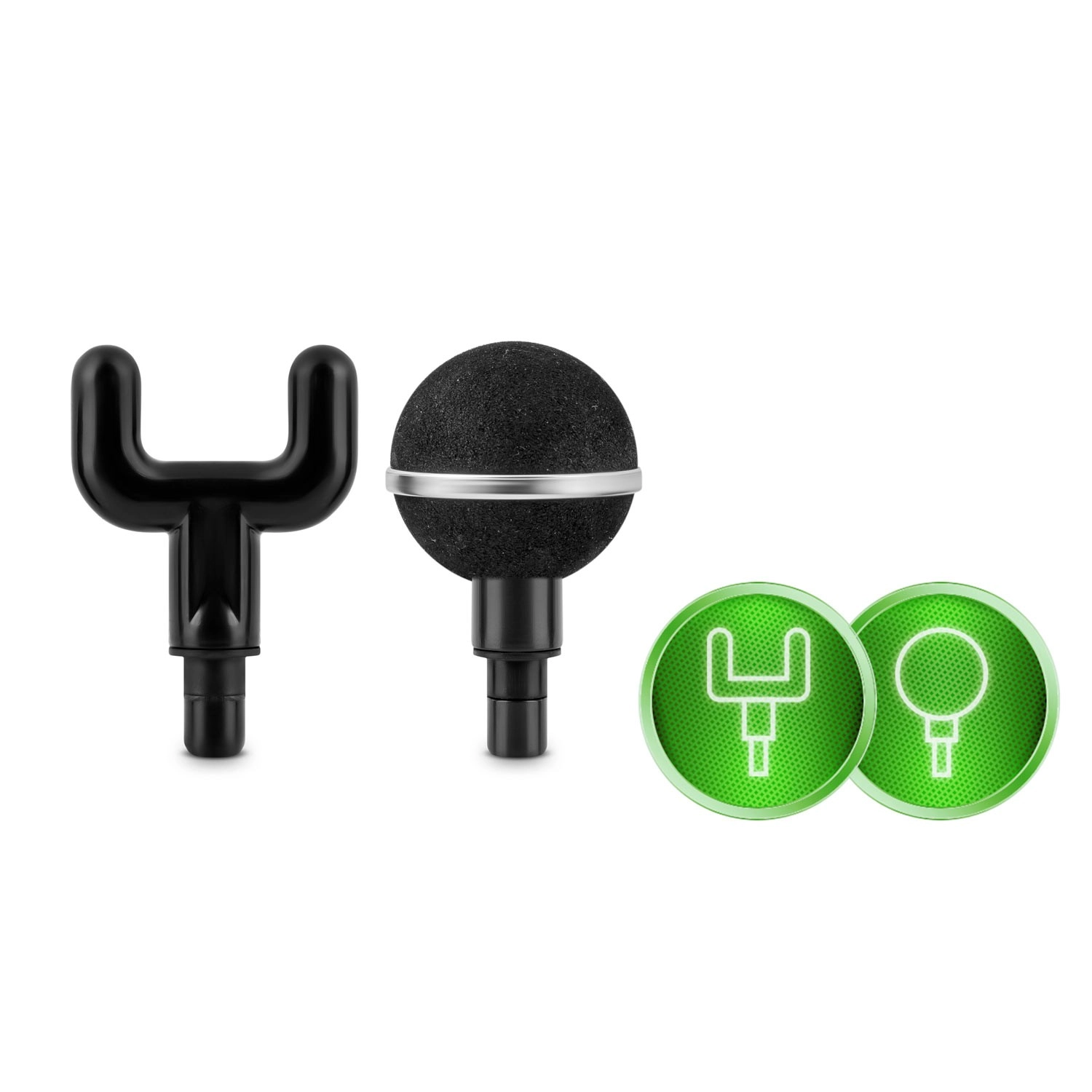 Kies precies het opzetstuk dat jouw spieren nodig hebben: de vork voor het gebied rond de wervelkolom en de achillespees, de bal voor grotere spiergroepen, de platte kop voor stijve zones, de kogel voor intense triggerpoint‑massage en andere speciale vormen voor de pols, gevoelige plekken of brede strijkbewegingen.