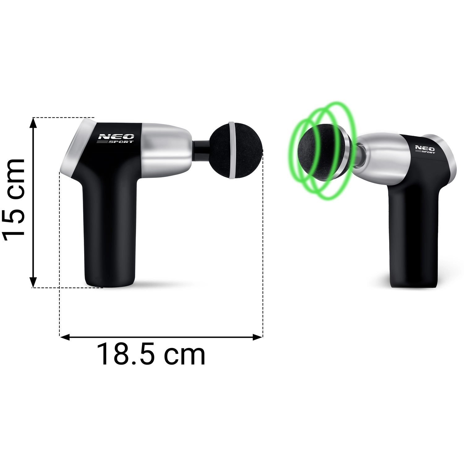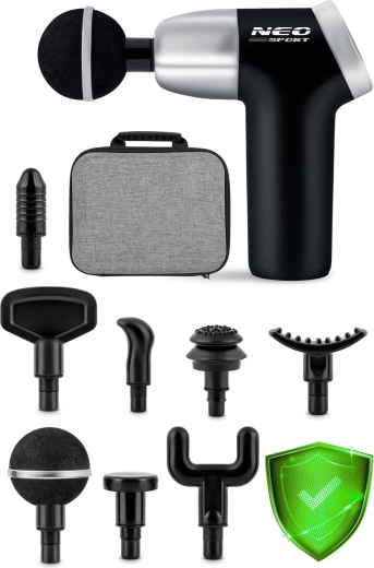 NEO Sport NS-500 is een betrouwbaar percussie‑massagepistool dat diep in de spiervezels werkt en helpt bij het losmaken van stijve zones, sneller herstel en opwarmen voor het stretchen. Dankzij de 8 opzetstukken kies je eenvoudig de ideale druk en contactoppervlakte – van brede spiergroepen tot nauwkeurige triggerpoint‑massage.