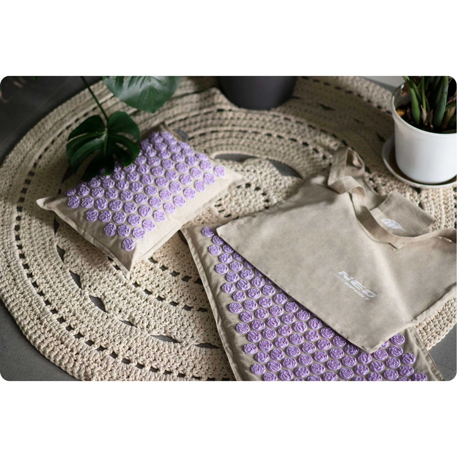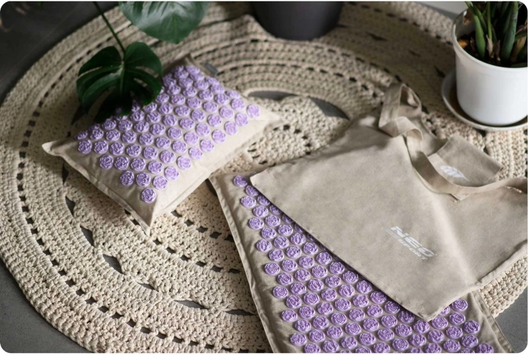 De NEO-SPORT acupressuurset combineert natuurlijke materialen met effectieve stimulatie van drukpunten. De lotusrozetten, bevestigd met Heat-Press-technologie, zorgen voor duurzaamheid en veilig gebruik, terwijl de combinatie van linnen en katoen van de hoes zacht is voor de huid en zich uitstekend naar het lichaam vormt. Regelmatig gebruik helpt spierspanning te verlichten, ondersteunt de circulatie en bevordert een snelle regeneratie na een drukke dag.