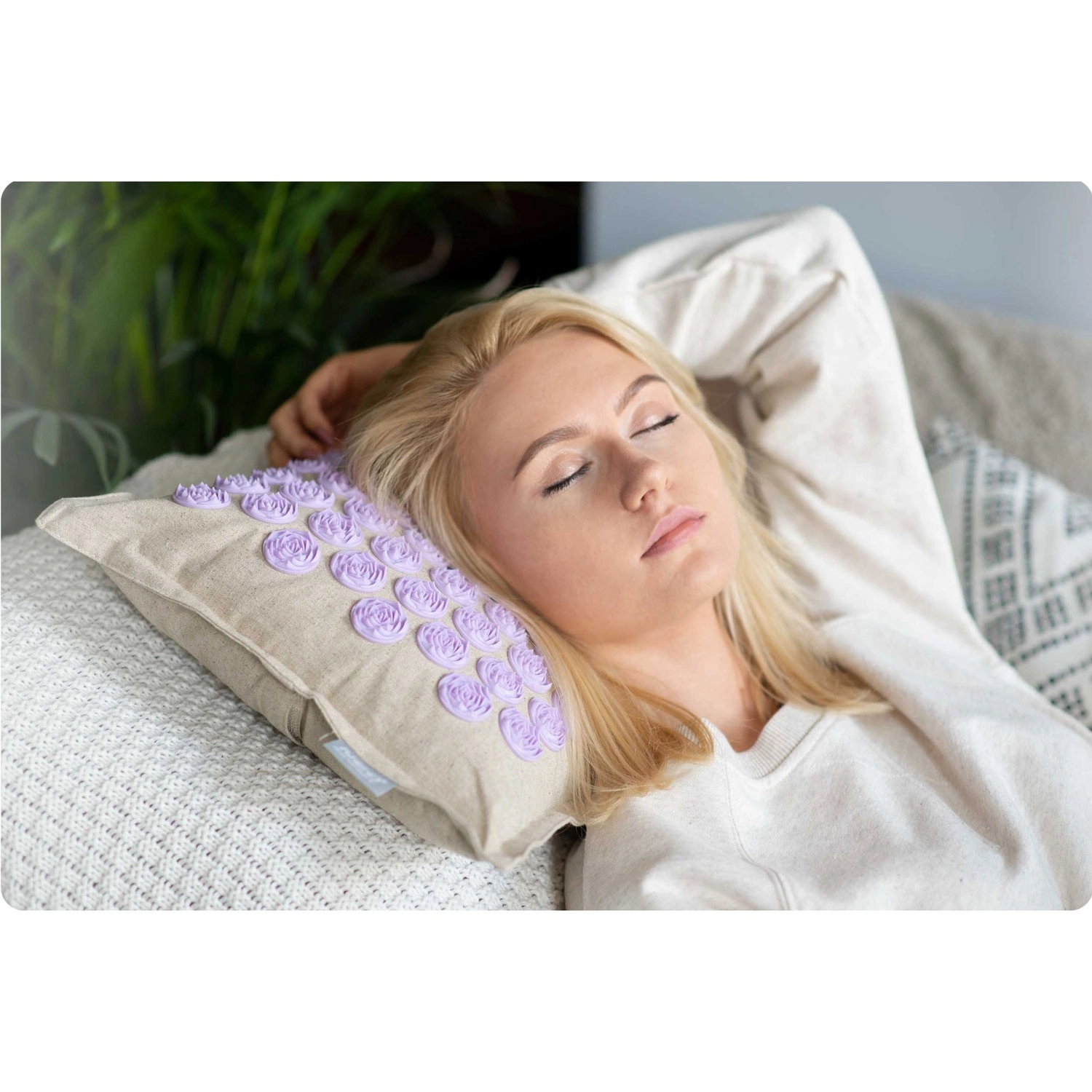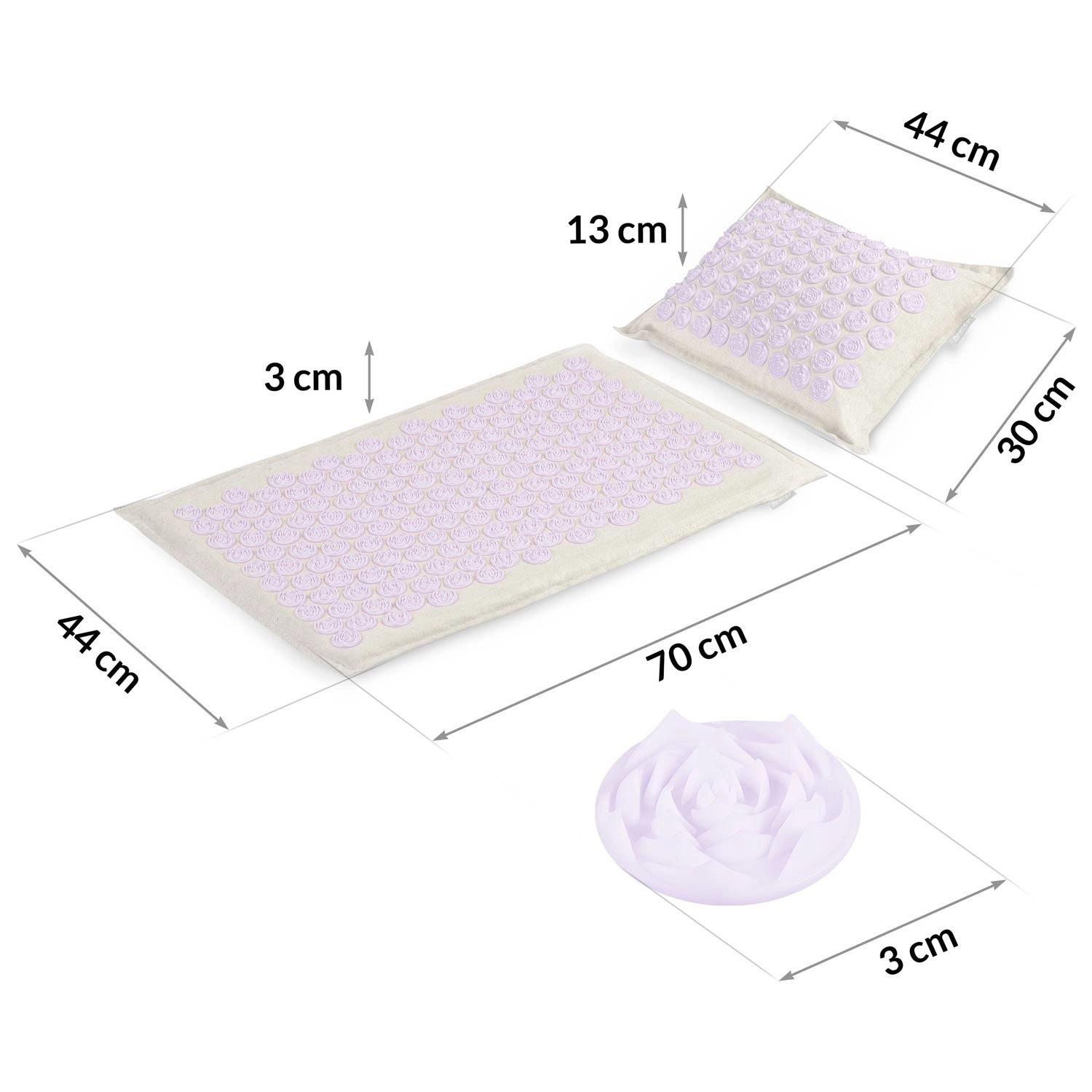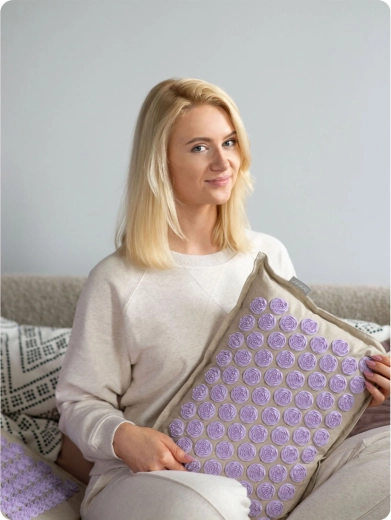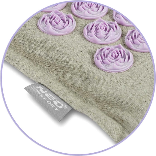 De dicht geplaatste lavendelkleurige schijven stimuleren drukpunten over de volledige lengte van de rug en in de nekomgeving. Ze bevorderen de doorbloeding, ontspannen de spieren en helpen bij rug- en nekpijn en bij stress.