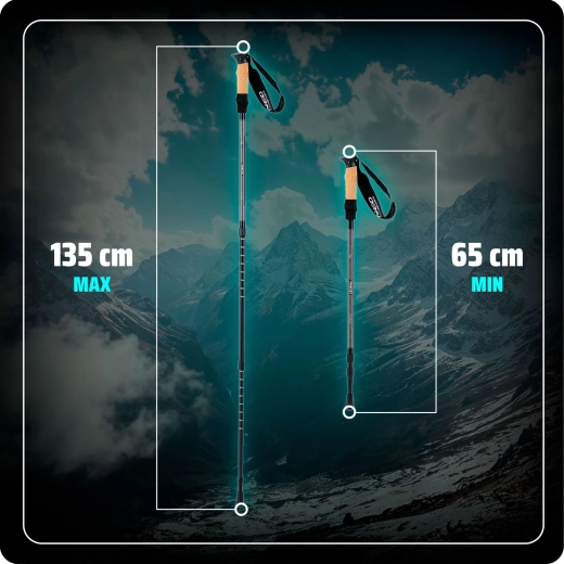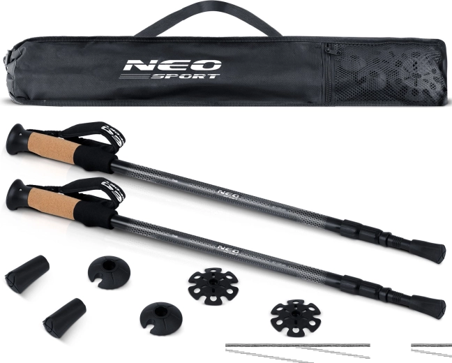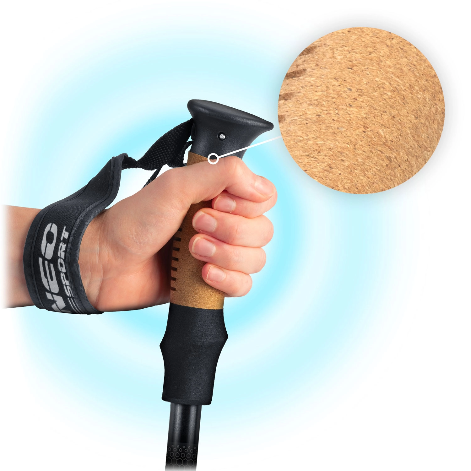 Ontdek bergpaden en stadsroutes met zekerheid en comfort. De Neo-Sport NS-380 trekkingstokken combineren het lage gewicht en de buitengewone duurzaamheid van AL 7075-legering met het comfort van een kurkhandgreep en een zachte, eenvoudig verstelbare polsriem. Dankzij de soepele telescopische verstelling van 65–135 cm pas je ze moeiteloos aan je lichaamslengte en het terrein aan, en in ingeschoven toestand bevestig je ze gemakkelijk aan je rugzak.