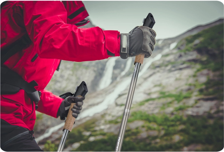 Ervaar stabiliteit en comfort bij elke stap. Deze verstelbare trekkingstokken met een bereik van 85–143 cm pas je moeiteloos aan je lichaamslengte en het terrein aan. Ergonomische kurken grepen ademen, glijden niet en houden een aangename temperatuur in zowel hitte als kou. Snelsluitende polshandschoenen met verstelling geven een stevige geleiding van de stok zonder onnodig knijpen – met één druk maak je ze los van de handgreep.