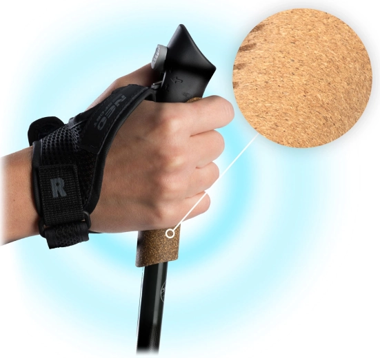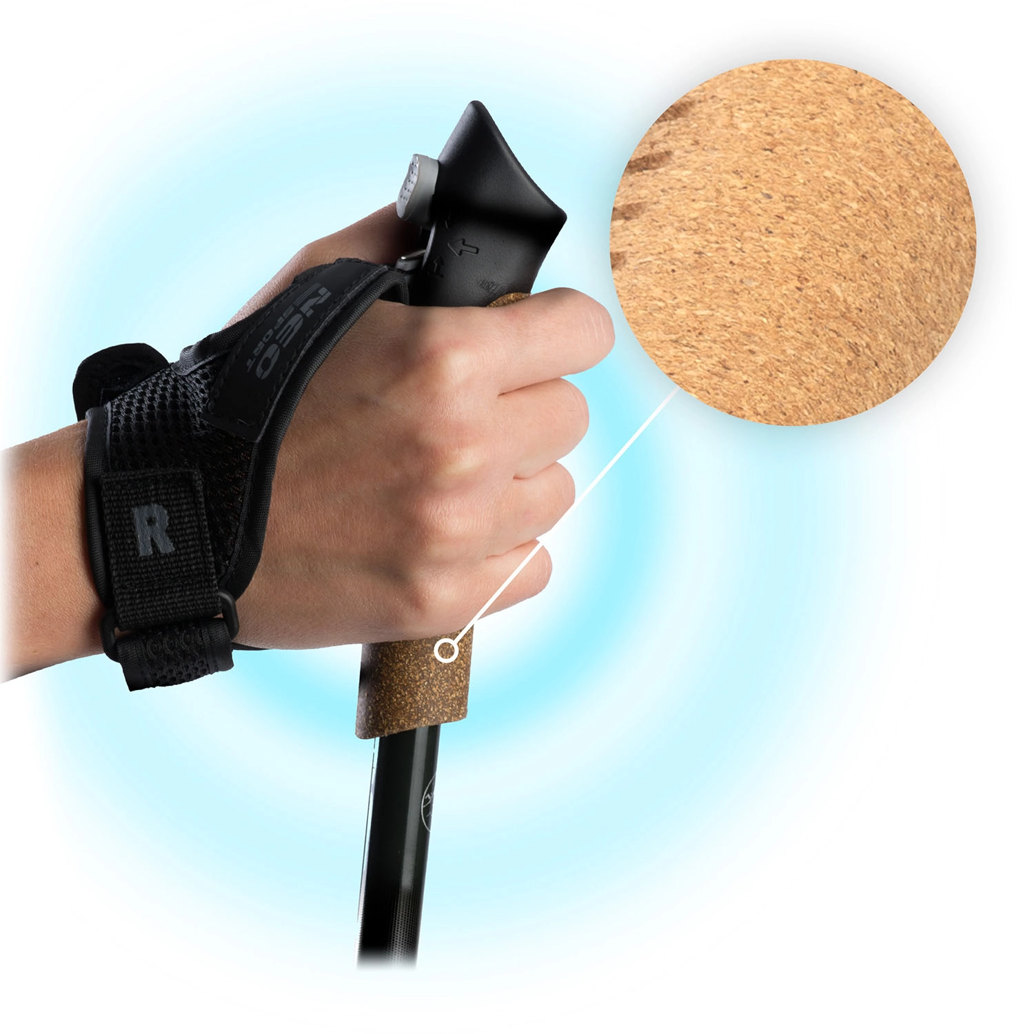 Ademend kurk houdt je handpalmen droog en comfortabel. De verstelbare polshandschoenen klik je met één knop eenvoudig los – een stevige grip zonder vermoeide vingers, zelfs tijdens lange tochten.