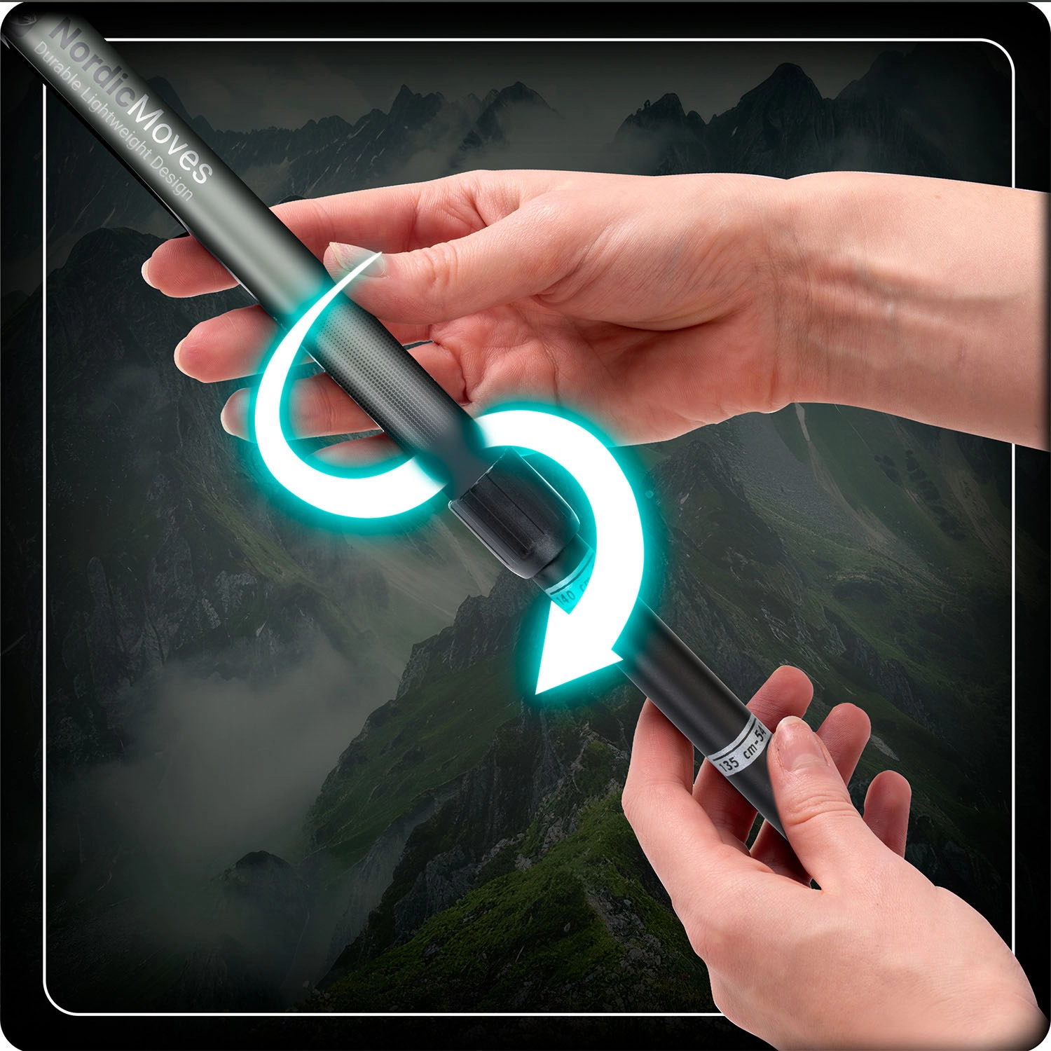 Telescopische verstelling voor nauwkeurige afstemming op je lengte en het terrein. Ingeschoven stokken bevestig je eenvoudig aan je rugzak en neem je overal mee naartoe.