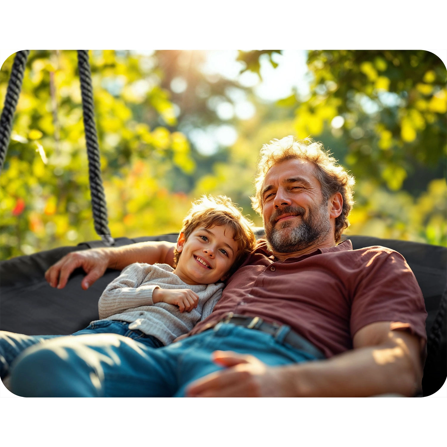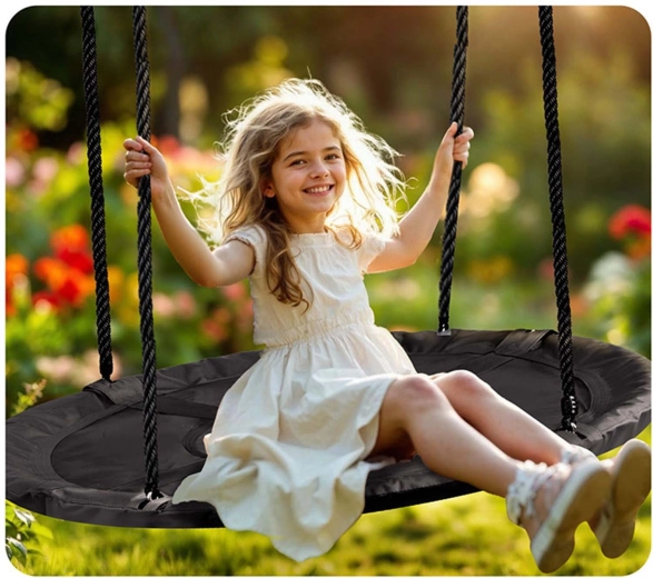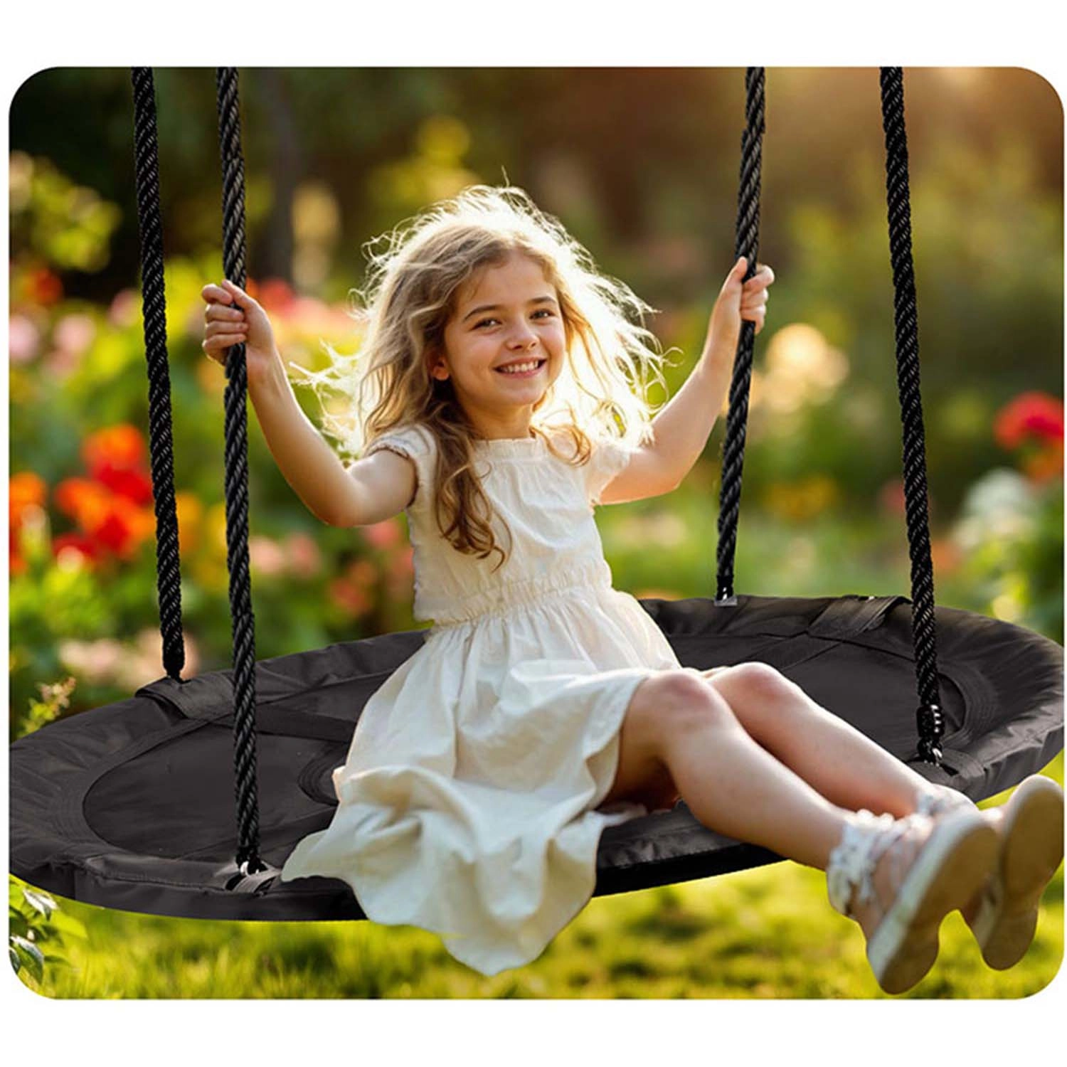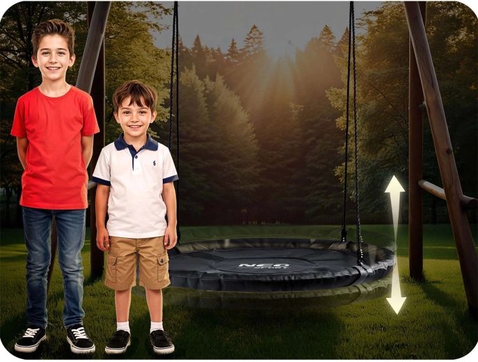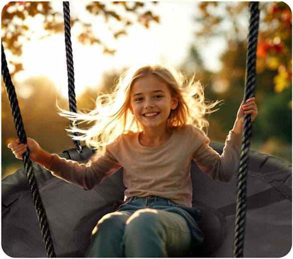 Dankzij de verstelbare ophangtouwen pas je de schommelhoogte eenvoudig aan de leeftijd en lengte van het kind aan – zo groeit het veilige plezier met hen mee. De robuuste constructie met een draagvermogen van tot 150 kg maakt schommelen met meerdere kinderen tegelijk of comfortabel loungen mogelijk.