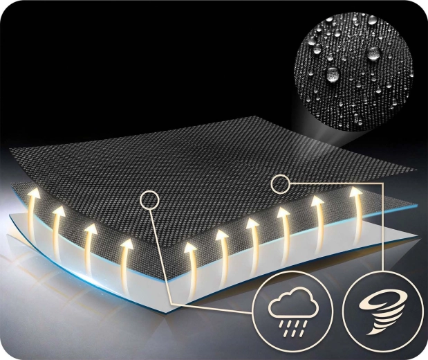 De slijtvaste stof voelt prettig aan, is eenvoudig schoon te maken en kan zonder zorgen buitenshuis worden gebruikt.