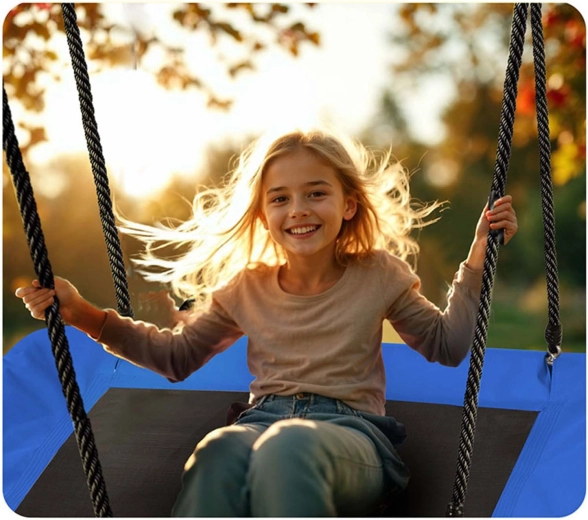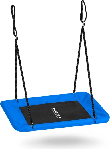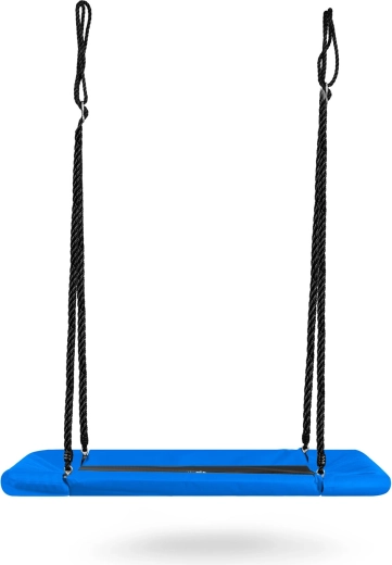 Grote rechthoekige nestschommel met een ruim en comfortabel zitvlak voor kinderen en volwassenen. Dankzij de waterbestendige Oxford 600D zitting, het stevige stalen frame met foamomranding en de sterke, verstelbare touwen is hij ideaal voor veilig buitenspeelplezier. Makkelijk te reinigen en belastbaar tot 150 kg.
