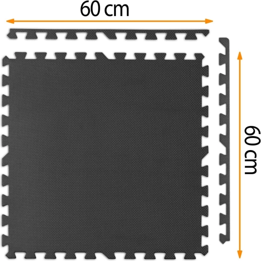 Tegels klikken eenvoudig in elkaar en vormen een oppervlak van 180 × 120 cm. Meer ruimte nodig? Verbind simpelweg meerdere sets en pas het formaat aan.