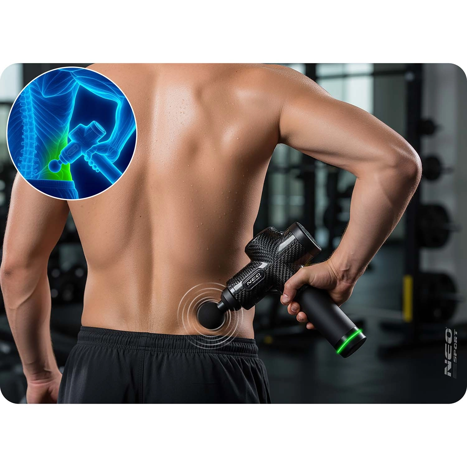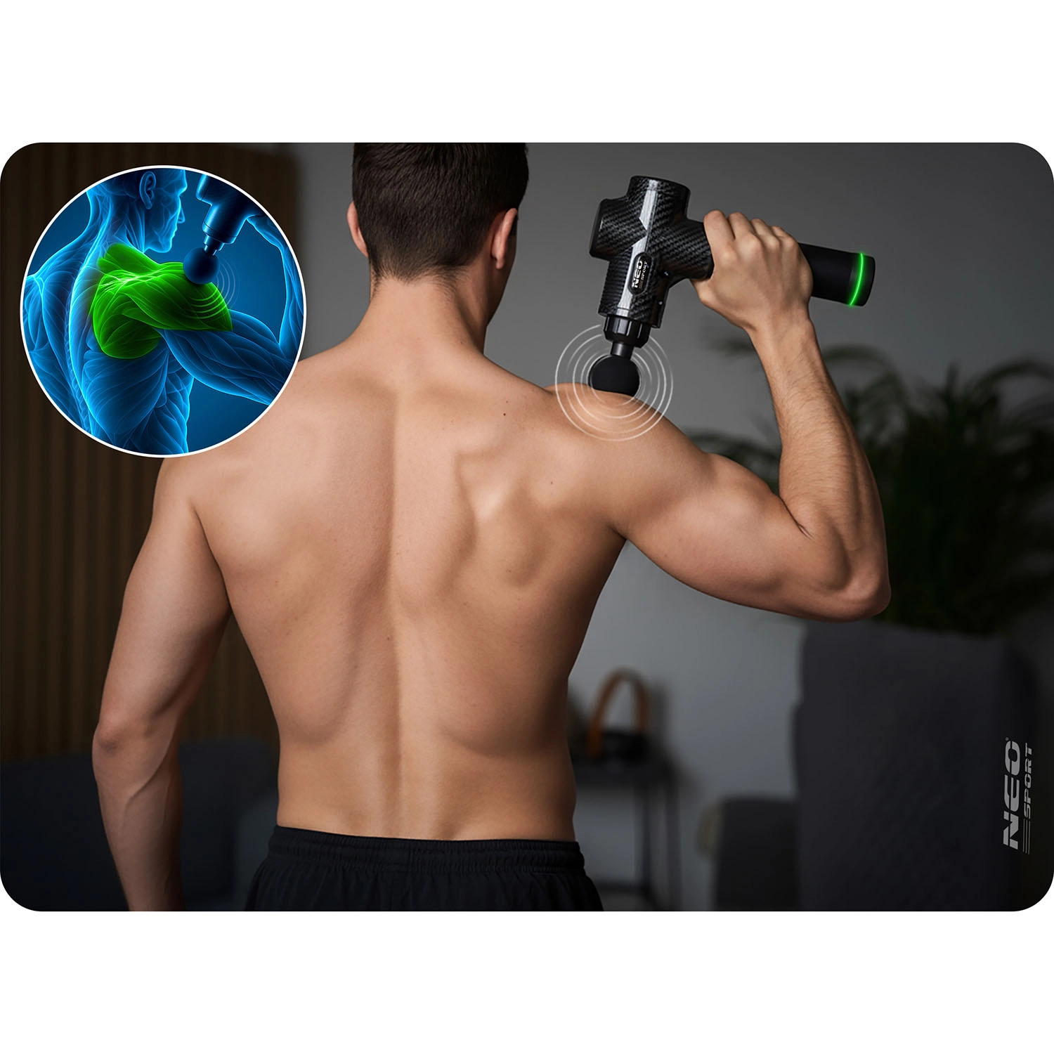 Ontdek effectieve verlichting van spanning met de NEO-SPORT NS-503 massagepistool. Biedt tot 30 intensiteitsniveaus, 9 verwisselbare opzetstukken voor verschillende lichaamsdelen en een lange accuduur. Dankzij de ergonomische vorm, draadloze werking en de praktische etui is hij ideaal voor thuis, in de sportschool en op reis. Veilig gebruik wordt gegarandeerd door oververhittingsbeveiliging en hoogwaardige afwerking volgens Europese normen.