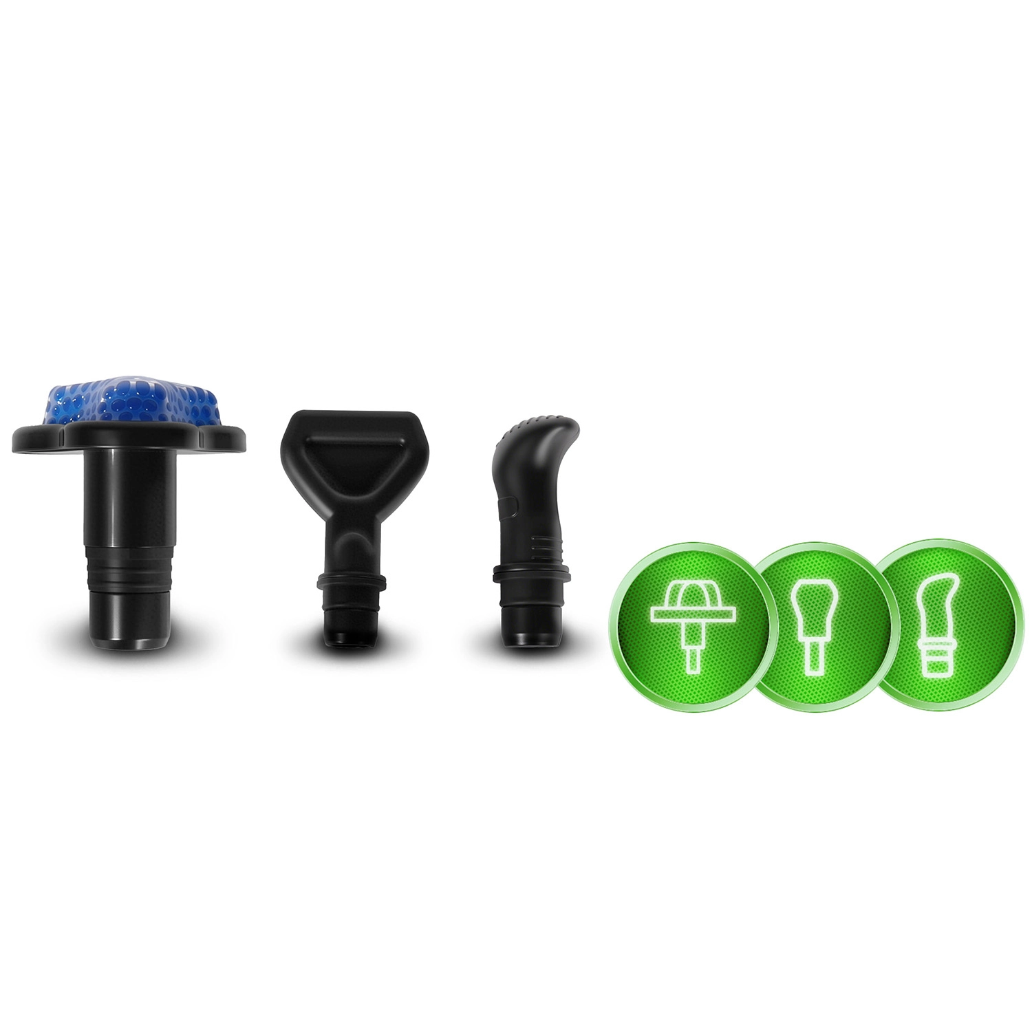 U-vorm voor het gebied rond de wervelkolom, kogelvormig voor grotere spiergroepen, vlak voor veelzijdige ontspanning, punt voor intensieve triggerpointmassage, verkoelende gelkop, spatelvorm voor langs benige structuren, vingervorm voor precieze druk, dubbele paddenstoel voor doorbloeding en zachte paddenstoel voor gevoelige zones.