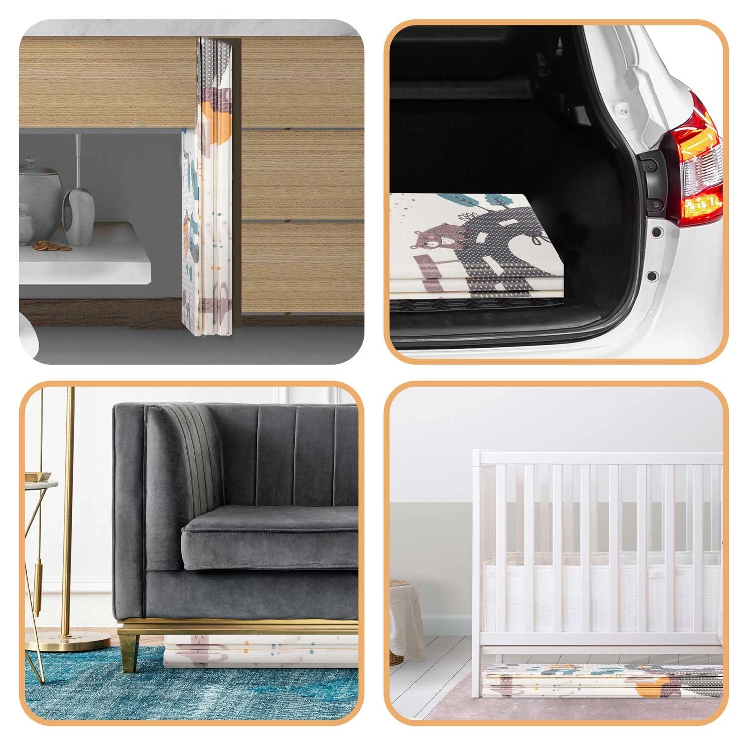 Ideaal voor spelen, kruipen, oefenen met ouders, picknicks en gezinsactiviteiten binnen en buiten. Tijdloze kleuren passen in ieder interieur en de mat vervangt elegant een vloerkleed in de kinderkamer.