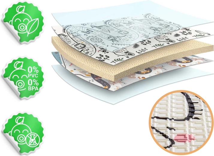 - Veilig materiaal: XPE zonder BPA, PVC, ftalaten en formamide, certificering CE, EN71-1, EN71-2, EN71-3.