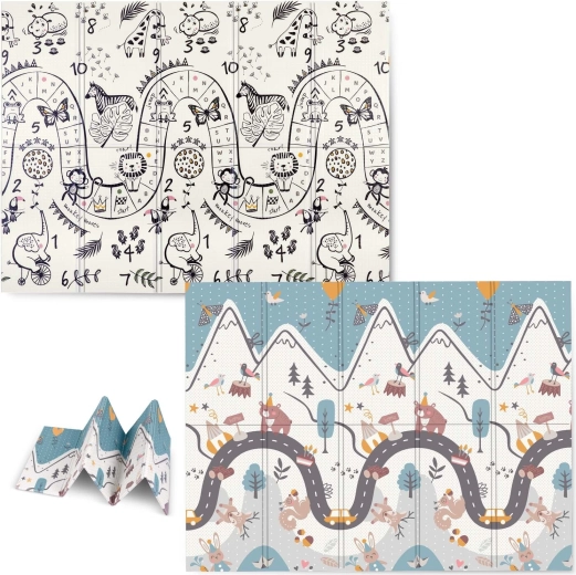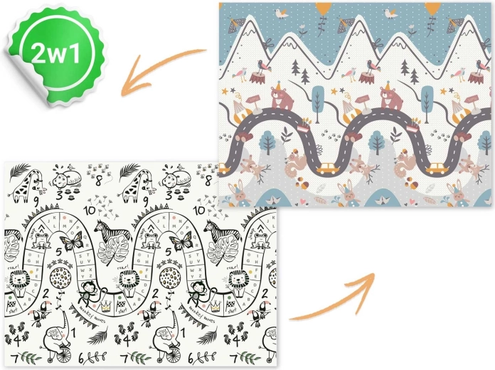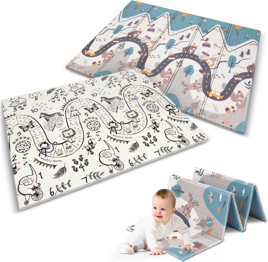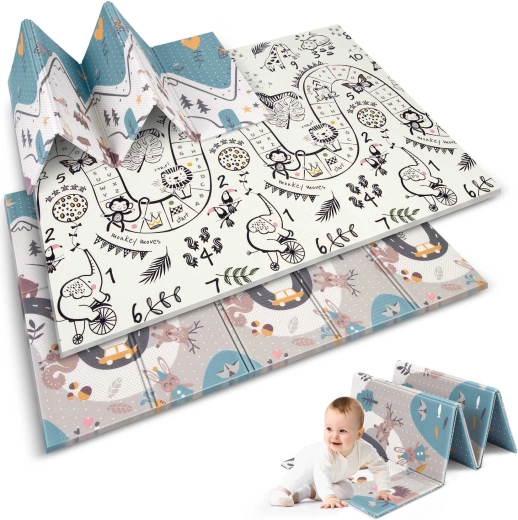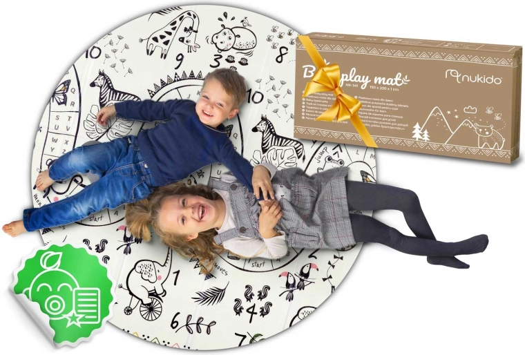 De opvouwbare kinderspeelmat Nukido met afmetingen 200 × 150 × 1 cm is ideaal voor veilig spelen, kruipen en de eerste stapjes. Biedt een dubbelzijdig design, schokdemping dankzij 1 cm dikke XPE-schuim, antislip oppervlak en eenvoudig schoonmaken. Vrij van BPA, PVC, ftalaten en formamide, voldoet aan EN71 en heeft een CE-certificering.