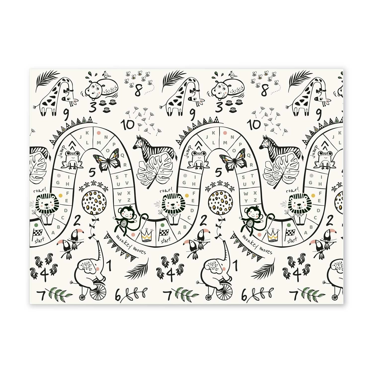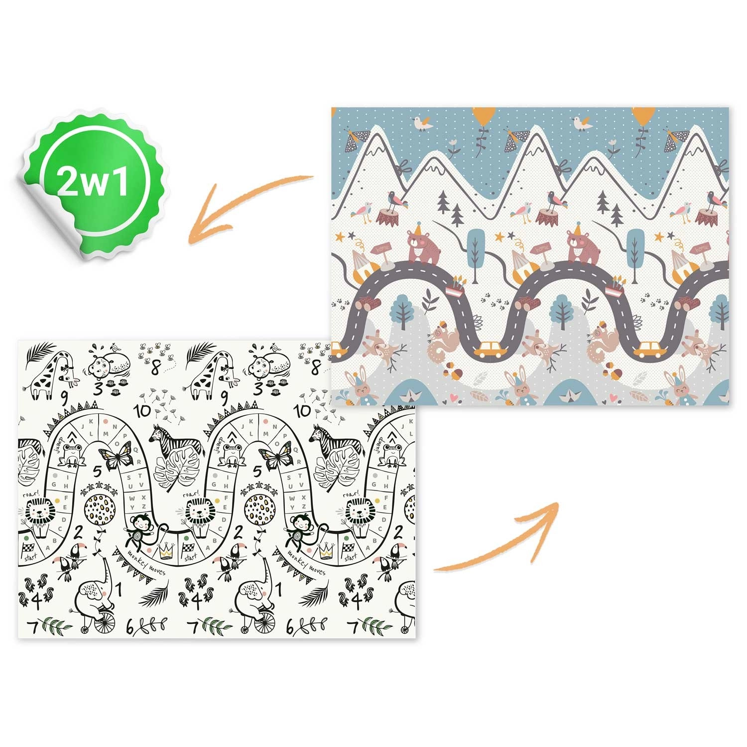 Elke zijde biedt een ander motief – van speelse diertjes en cijfers tot wegen en landschappen – voor de ontwikkeling van de verbeelding, tellen en zelfstandig spel.