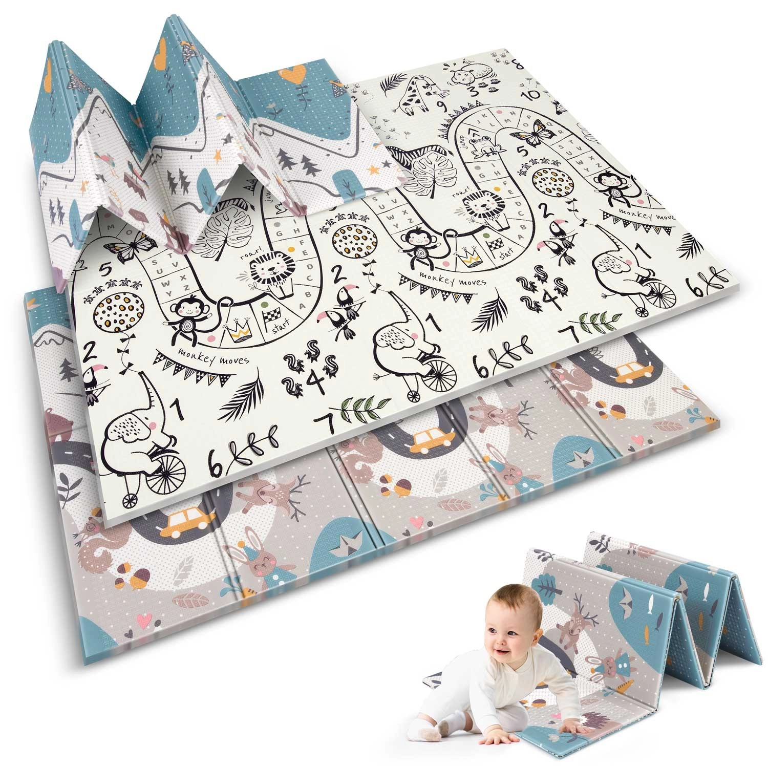 - Stabiliteit en zekerheid: antislip reliëfnoppen voor veilig spelen en de eerste stapjes.