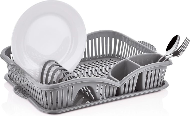 Houd je keuken overzichtelijk met een universeel afdruiprek dat helpt borden, kommen, glazen en bestek efficiënt te drogen. Dankzij het slimme ontwerp met afvoer wordt waterophoping geminimaliseerd en blijft het werkblad schoon.
