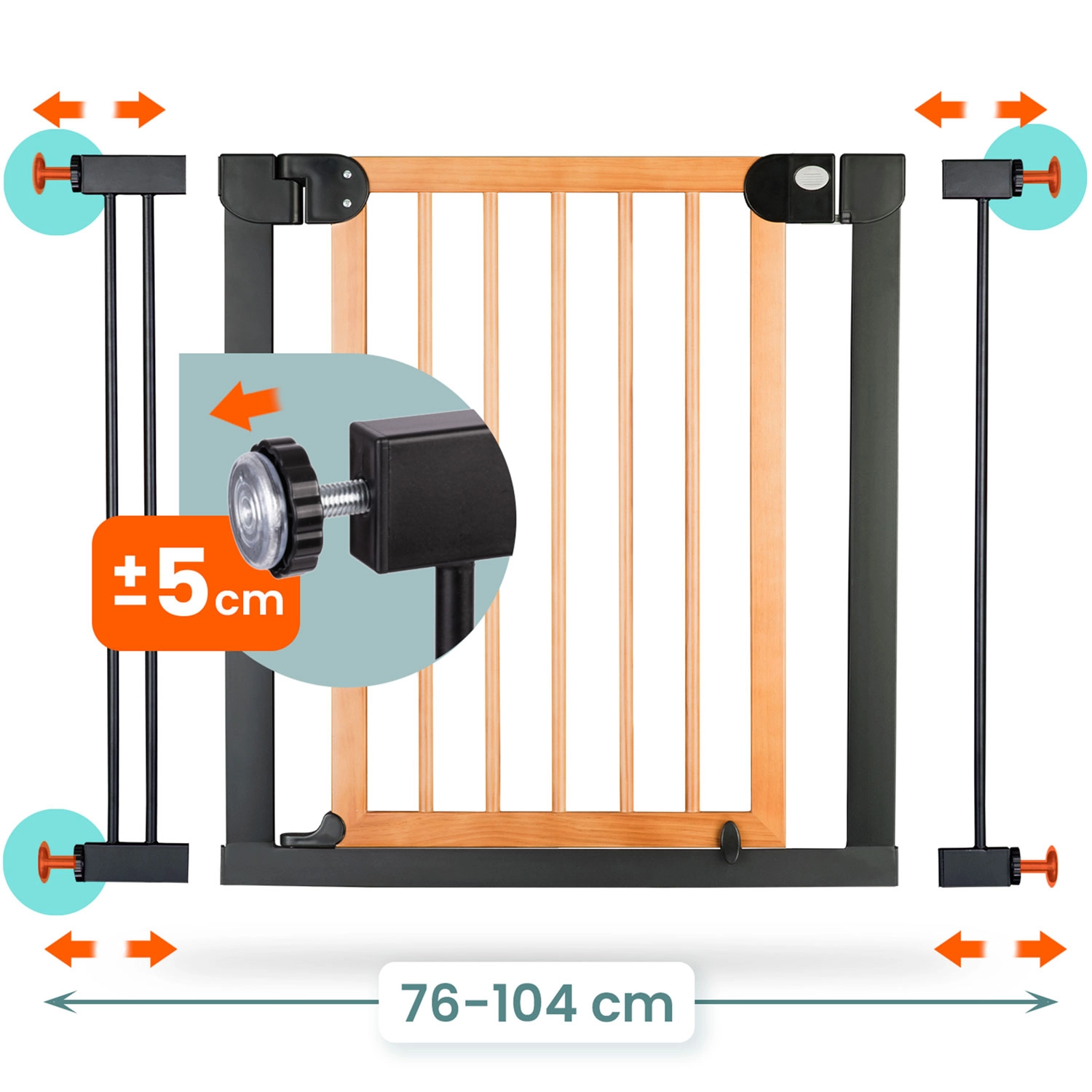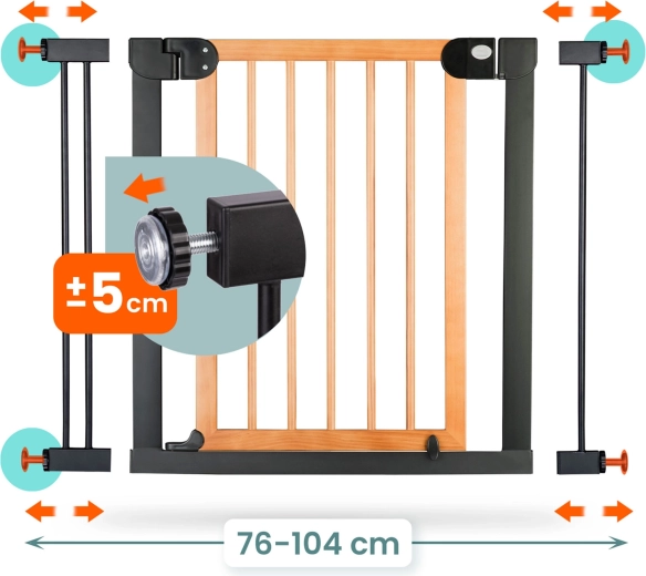 - Breedte 76–104 cm, hoogte 77 cm – universeel passend voor de meeste doorgangen.