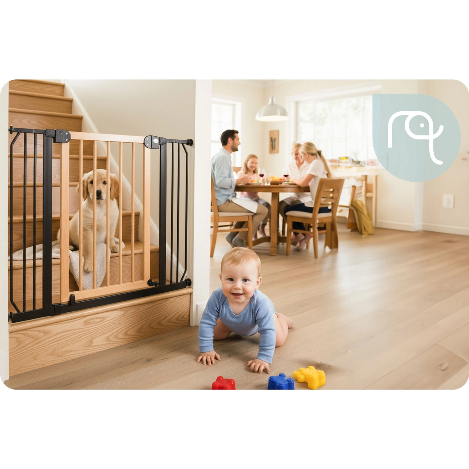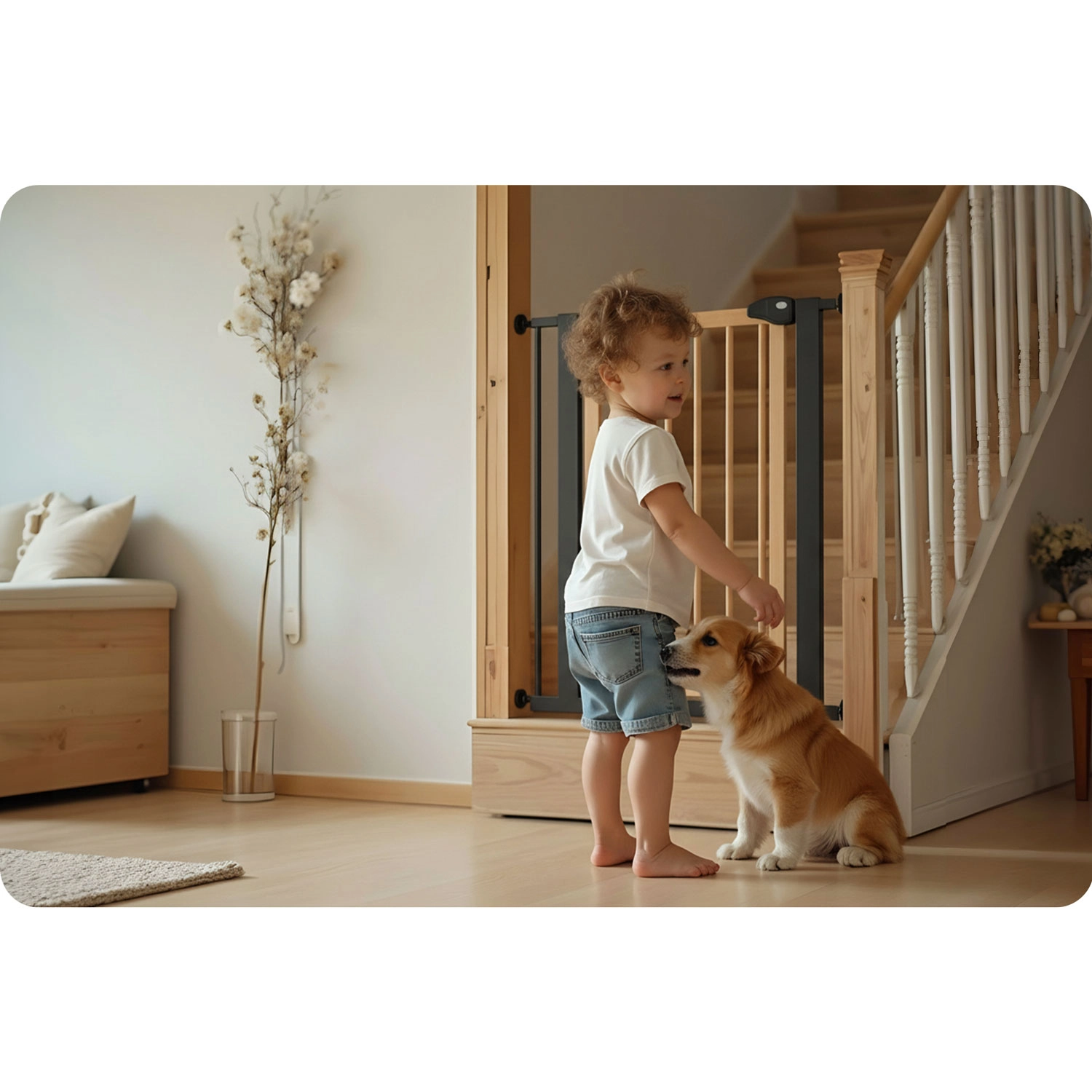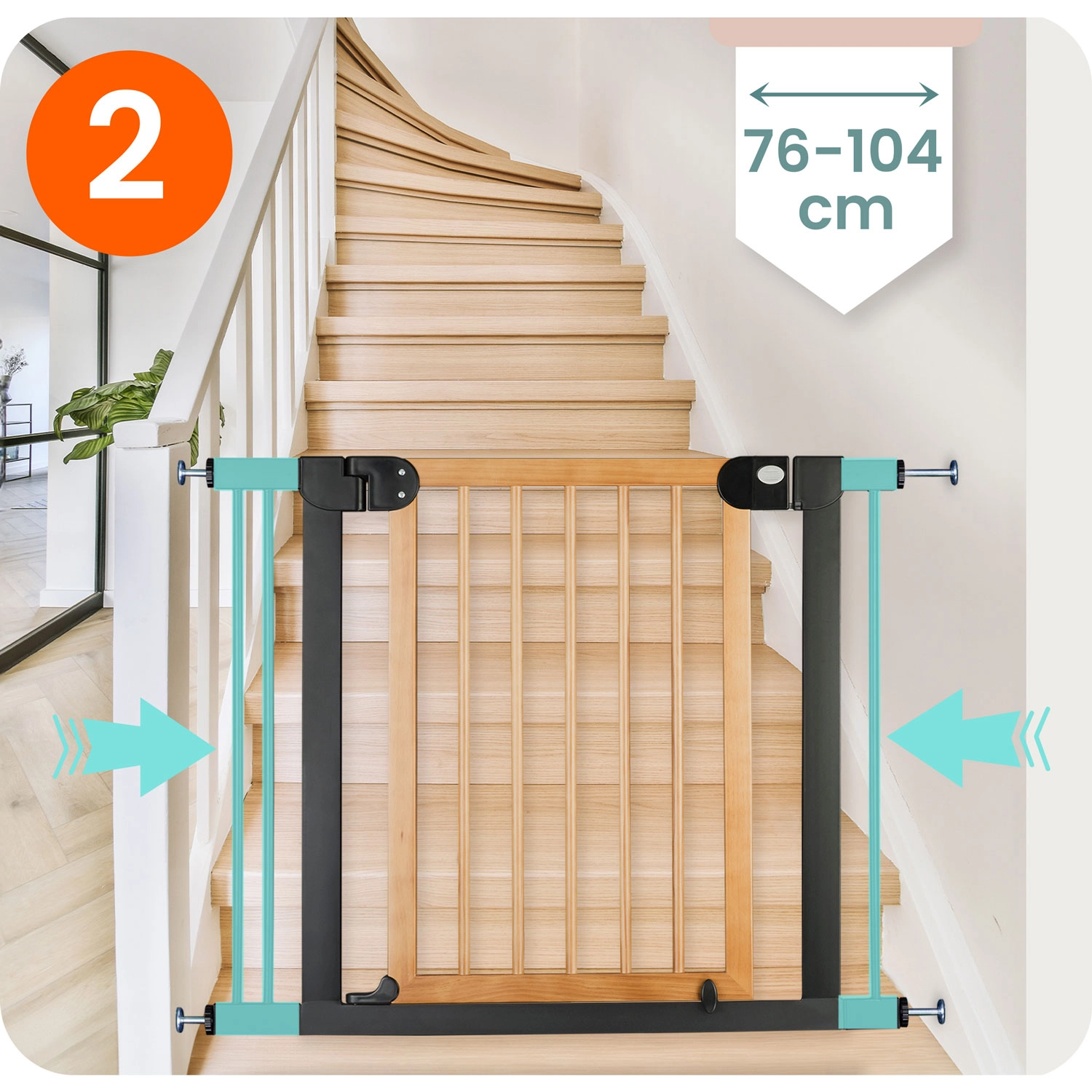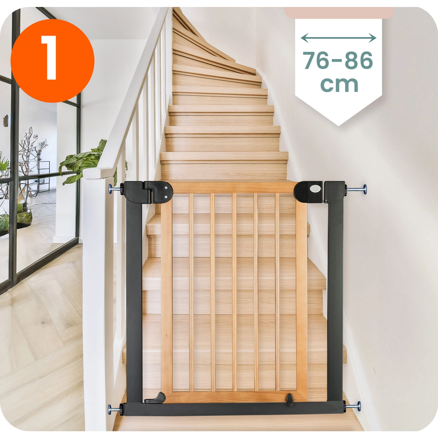 Beveilig trappen, deuren en doorgangen in een handomdraai – zonder boren en zonder wallschade. Het NUKIDO-hek wordt geklemd via 4 bevestigingspunten, waardoor je het gemakkelijk plaatst en weer verwijdert. Dankzij de elegante zwart-houten afwerking past het perfect in Scandinavische, moderne en industriële interieurs.