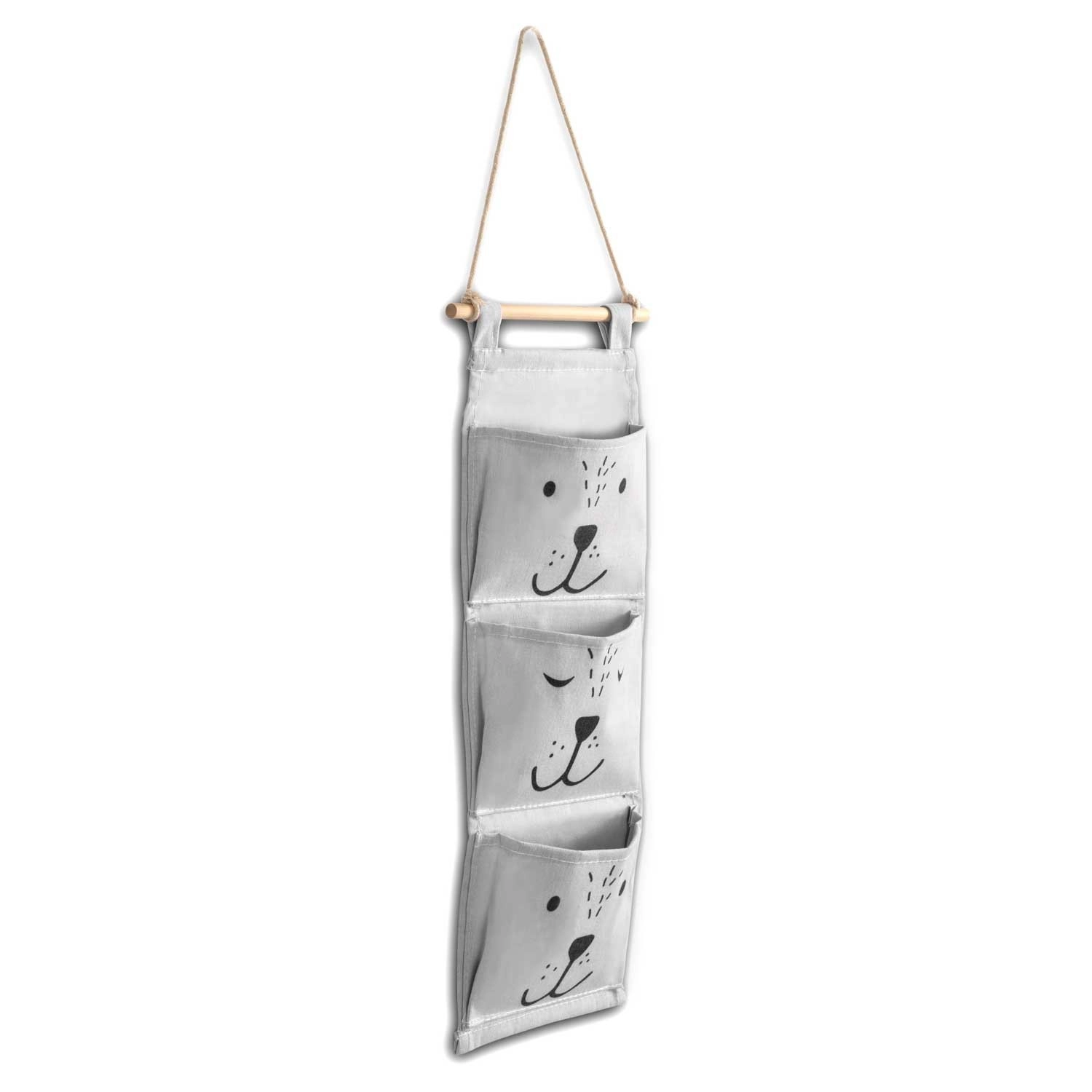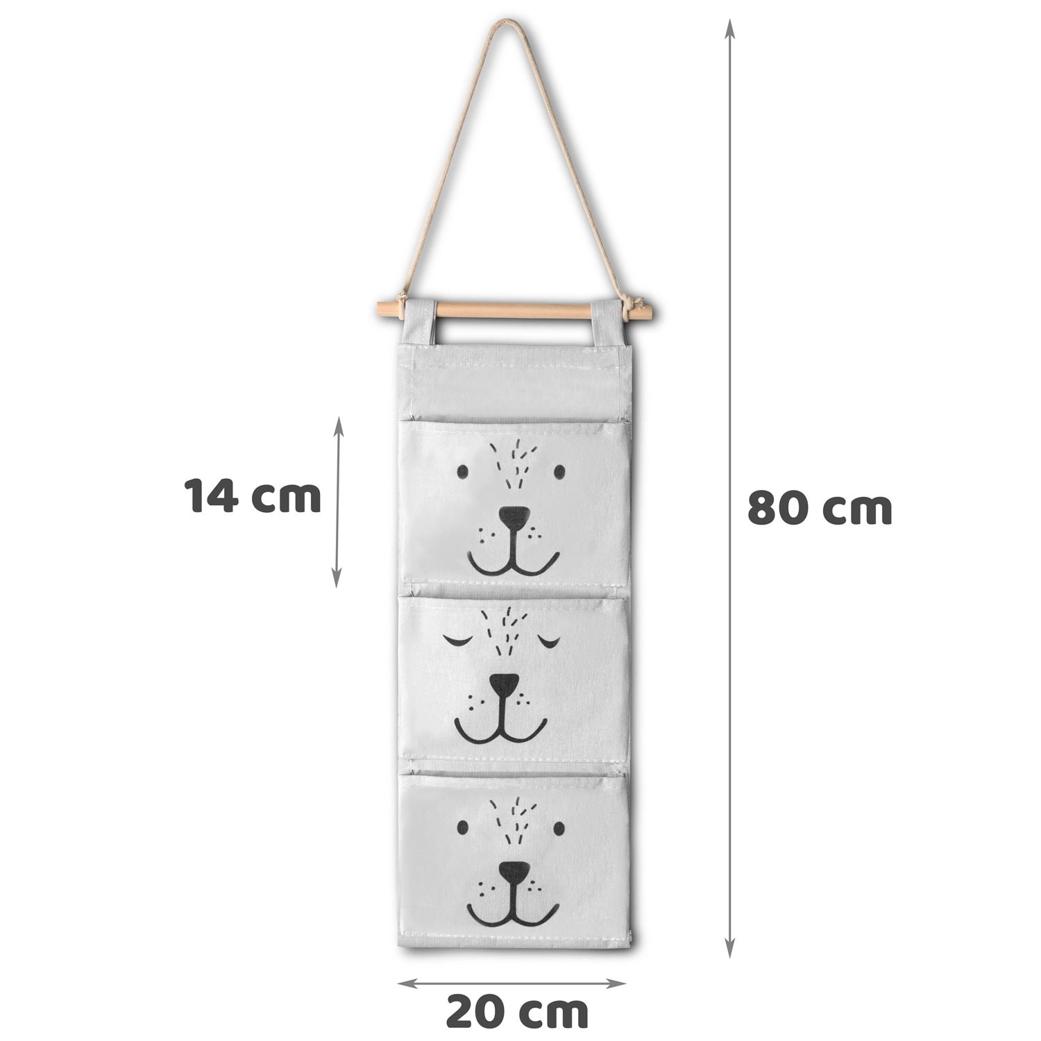 De hangende organizer van Nukido is een slimme oplossing voor het overzichtelijk opbergen van speelgoed, accessoires en andere kleinigheden. Drie diepe vakken met schattige diermotieven houden alles op zijn plek en dankzij het verticale design neemt hij geen kostbare vloerruimte in. Het hoogwaardige katoenen materiaal is prettig aan te raken en eenvoudig te onderhouden.