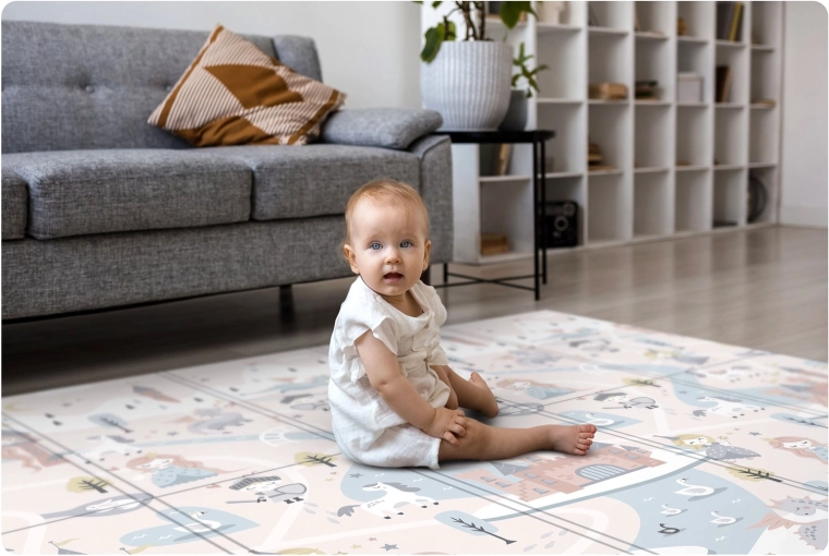 De 1 cm dikke XPE-kwaliteitsschuim zorgt voor een zachte landing, demping bij vallen en aangename warmte vanaf de vloer. Ideaal voor harde ondergronden zoals tegels of parket.