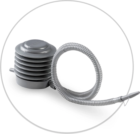 Inclusief een praktische voetpomp met twee opzetstukken en 2 reservestoppen. Eenvoudig oppompen en onderhoud zonder extra aankopen.