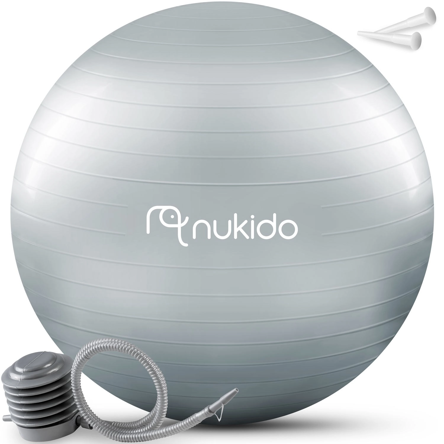 De grijze NUKIDO gymnastiekbal van 65 cm is ontworpen voor comfortabel versterken van het diepe stabilisatiesysteem, zachte stretching en ontspanning. Uitstekend voor zwangere vrouwen (verlichting voor de rug, correcte lichaamshouding, comfortabel zitten), maar ook voor iedereen die balans wil verbeteren, de corestabiliteit wil vergroten en gezond zitten wil ondersteunen.