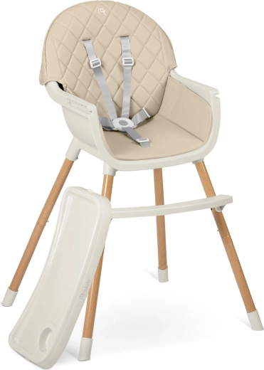 Dankzij 2 standen voor het blad pas je de afstand aan op leeftijd en behoefte van het kind, of je verwijdert het blad volledig zodat het kind dichter bij de tafel kan zitten. De 5-puntsgordels voldoen aan de strenge Europese norm EN 14988 en kunnen later worden gedemonteerd. Antislipdoppen op de poten houden de stoel stabiel op verschillende vloertypen.