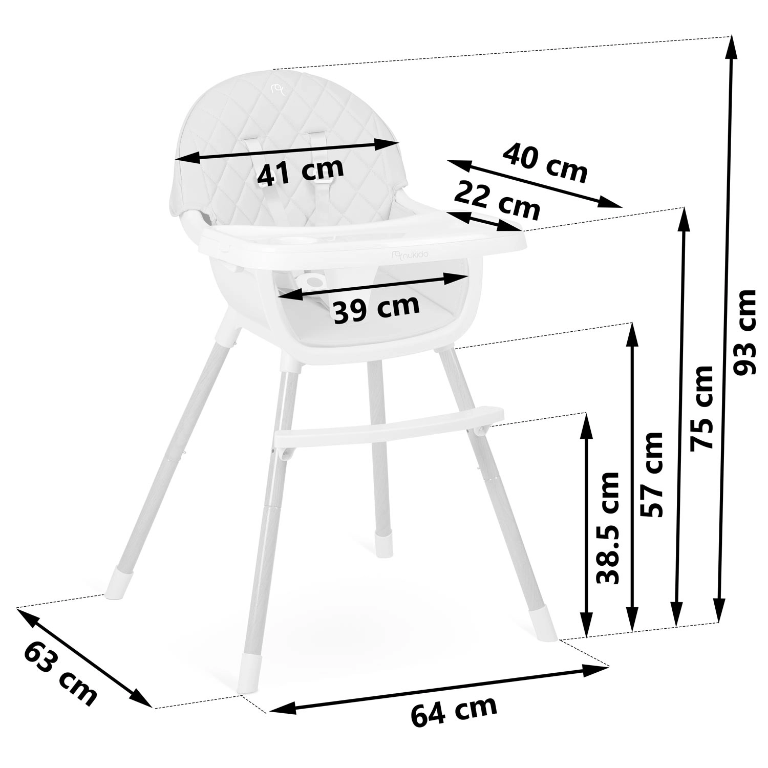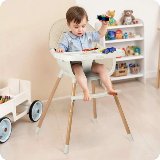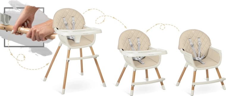 NUKIDO Lilo is een praktische 3-in-1 kinderstoel die meegroeit met je kind en veilig en comfortabel zitten biedt vanaf de eerste hapjes tot aan creatieve activiteiten. Het afneembare blad met inzet kan eenvoudig onder stromend water of in de vaatwasser worden gereinigd, de zachte bekleding hoef je alleen maar af te nemen. De stabiele constructie met poten in houtlook en een stevige voetensteun zorgt voor zekerheid bij dagelijks gebruik.