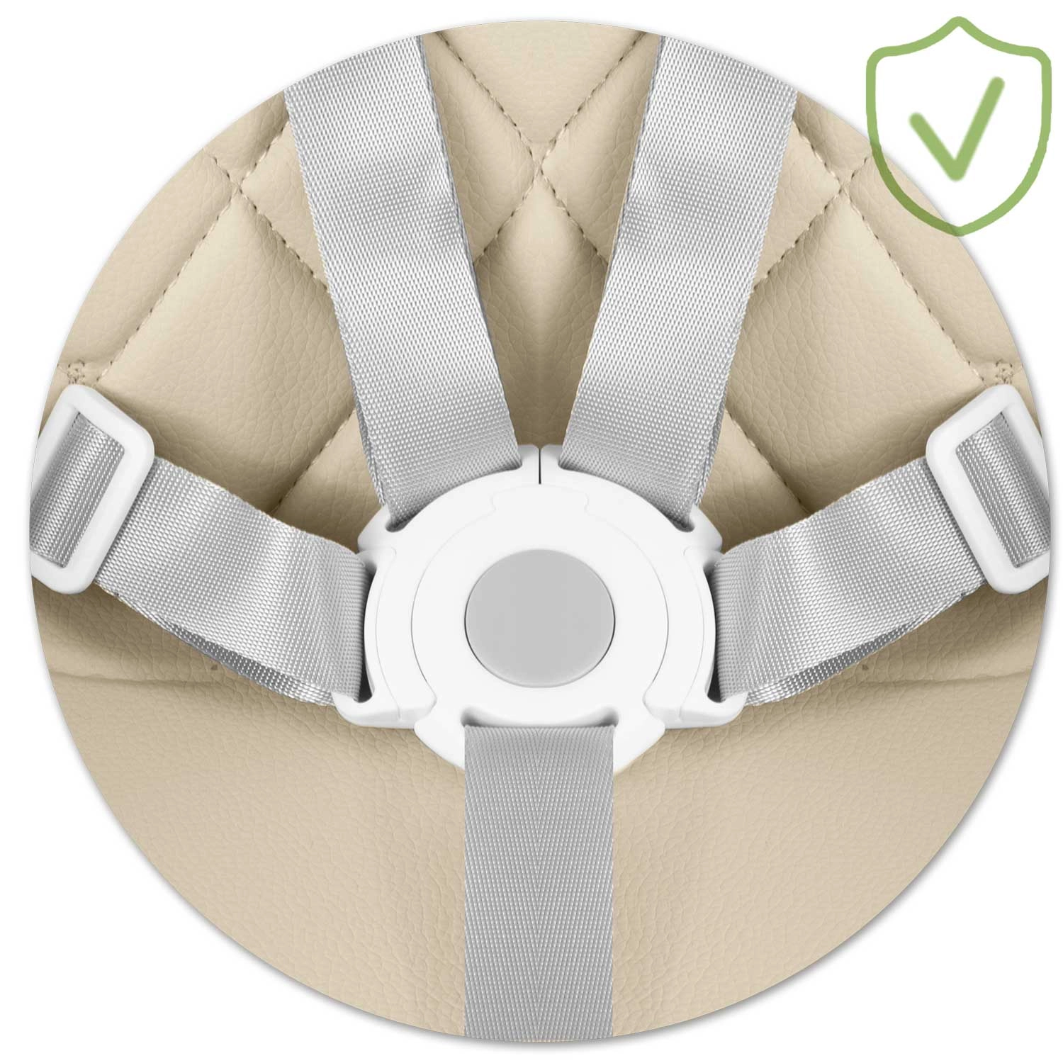 Verstelbare 5-puntsgordels houden je kind veilig op zijn plaats en voldoen aan de strenge norm EN 14988. Later kunnen ze volledig worden verwijderd.