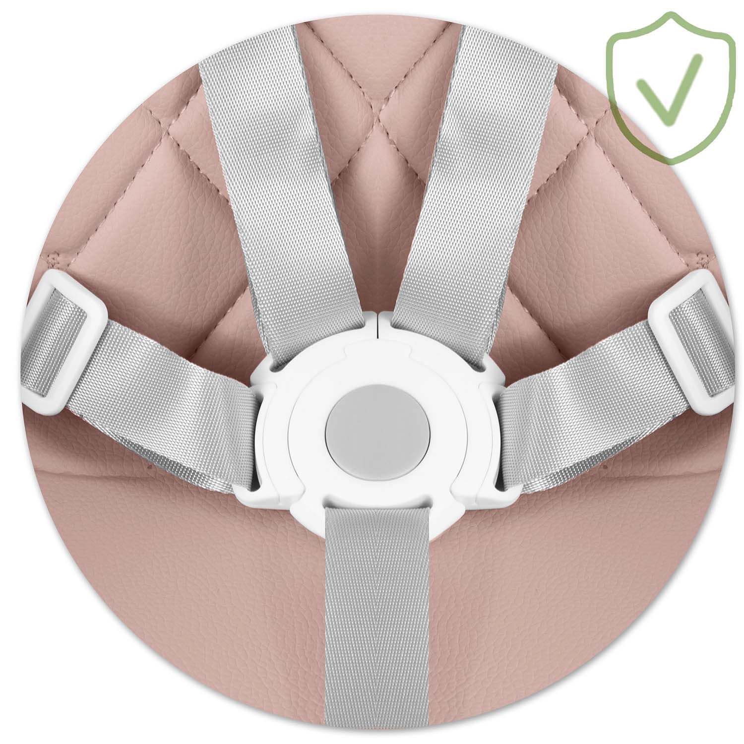 Betrouwbare 5-puntsgordels, stabiele poten met anti-slip doppen en een stevige constructie zorgen voor veilig zitten tijdens het eten en spelen.