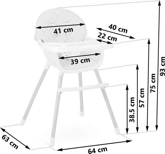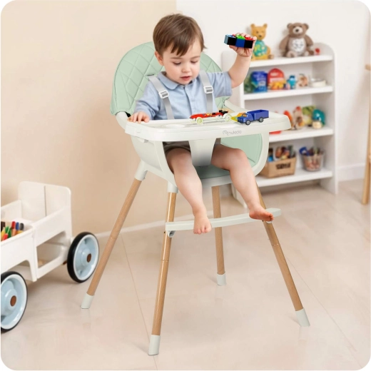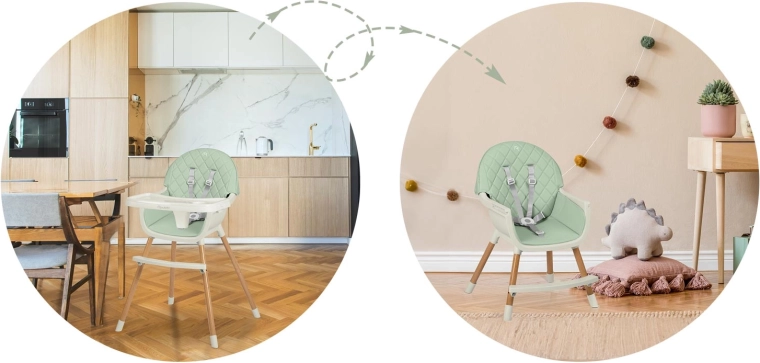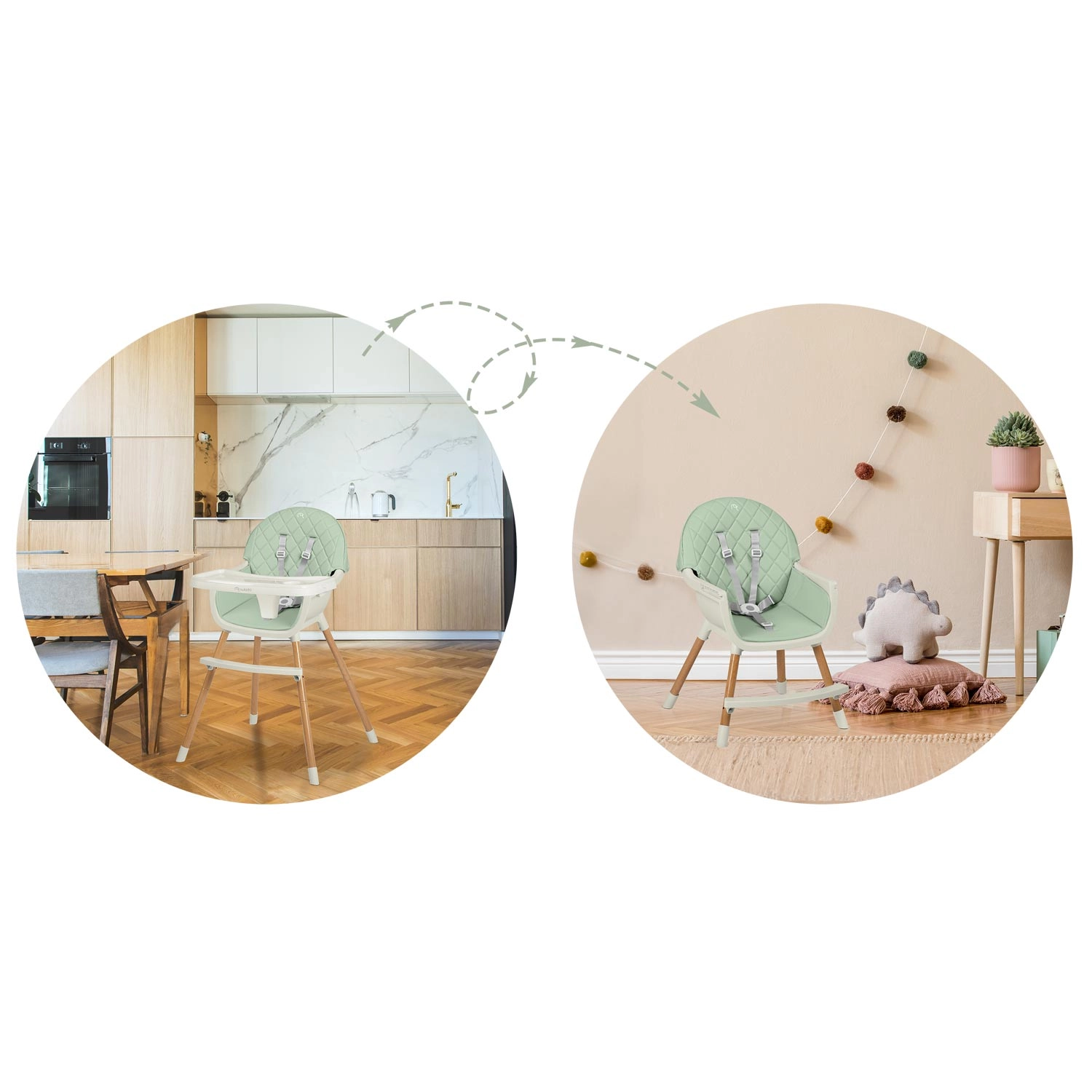 Het converteerbare ontwerp maakt gebruik als hoge stoel, lage fauteuil of peuterzit mogelijk.
