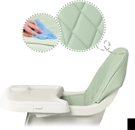 De uitneembare blad-inzet kan onder de kraan én in de vaatwasser. Het afwasbare zitkussen neemt geen vuil op – even afnemen en klaar.