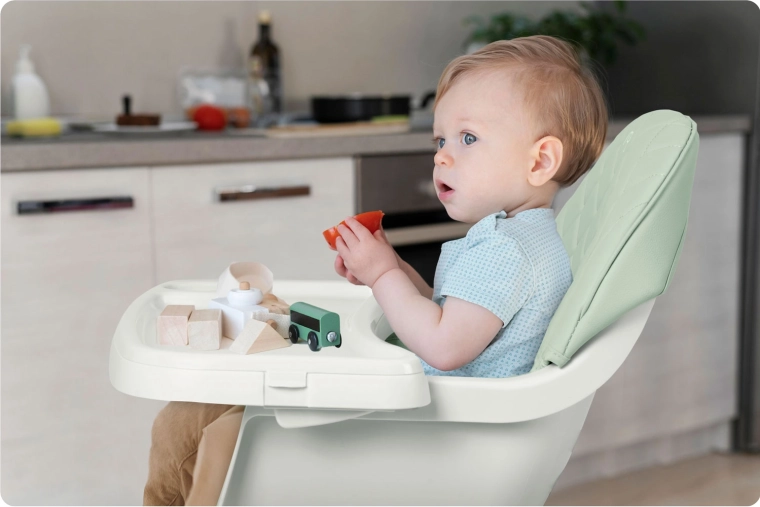 NUKIDO Lilo is een veelzijdige en stabiele kinderstoel die meegroeit met je kind. Dankzij het 3-in-1-systeem pas je hem eenvoudig aan verschillende situaties aan – van een hoge stoel aan tafel tot een lagere stoel voor een peuter. De comfortabele bekleding is gemakkelijk afwasbaar en neemt geen vuil op, waardoor opruimen na het eten zo gedaan is.