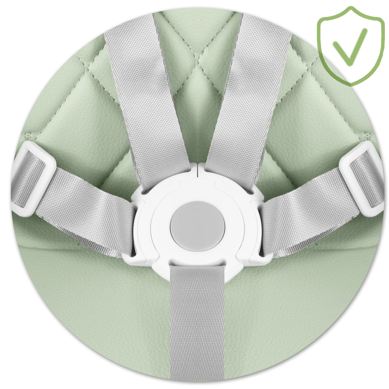 Vijfpuntsgordels, stabiele poten met antislipdoppen en naleving van EN 14988 houden je kind veilig.