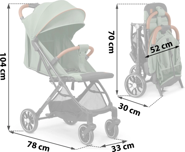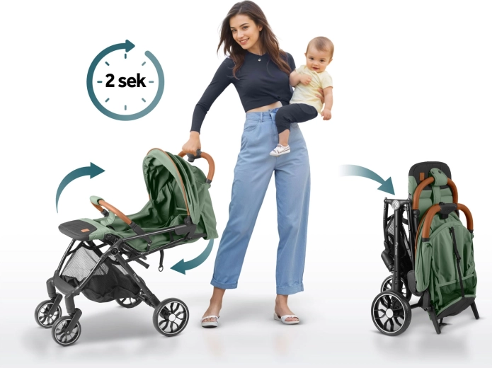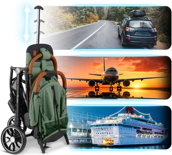 Met één hand klap je de buggy in enkele seconden in tot handbagageformaat. Ideaal voor reizen met auto en vliegtuig – gemakkelijk te dragen en op te bergen.