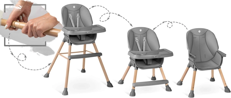 - 3-in-1: hoge stoel, lage stoel om te spelen, zitten aan tafel zonder blad