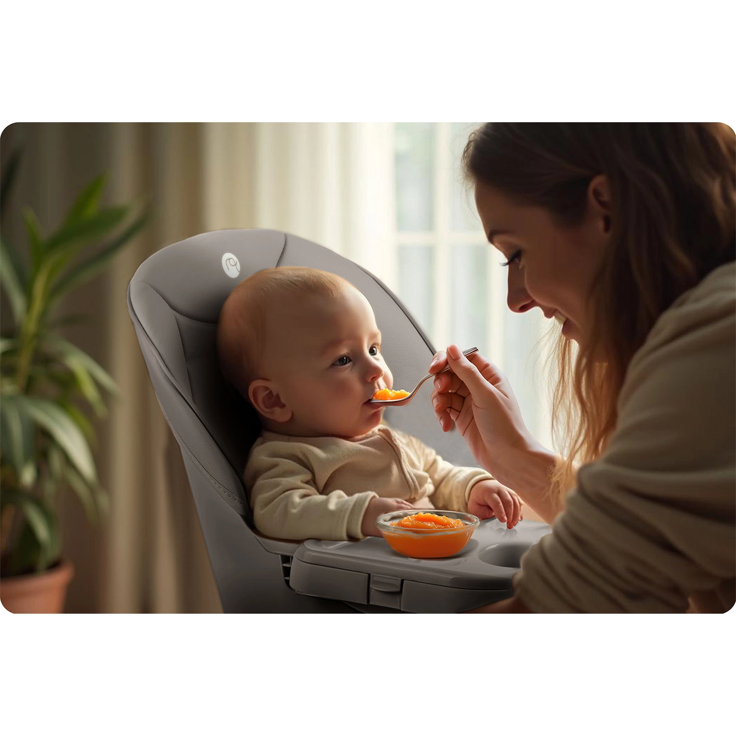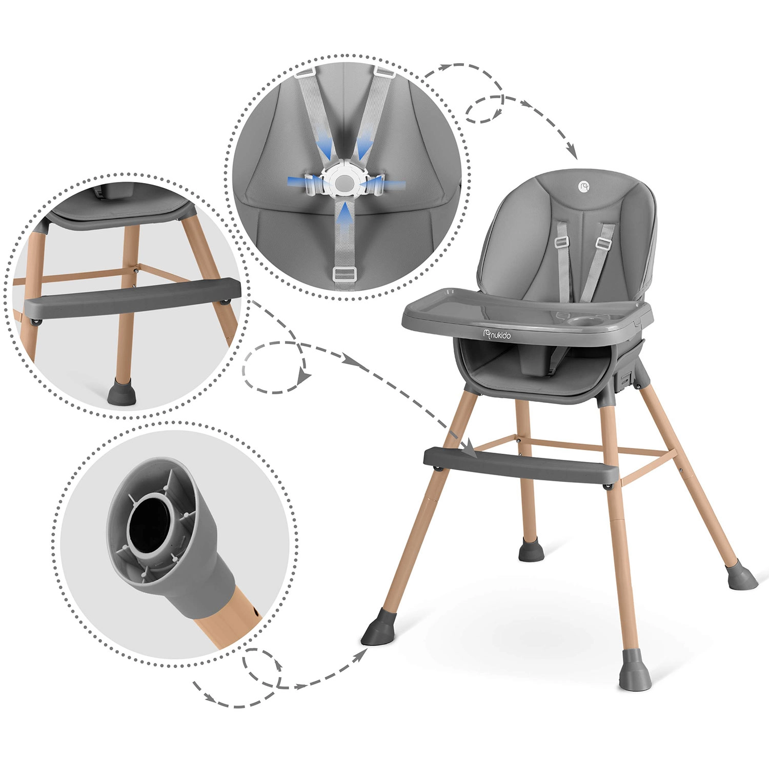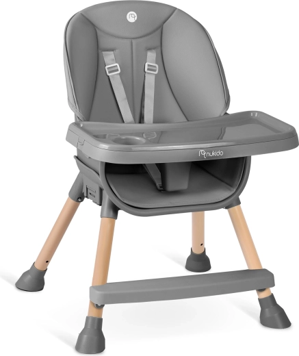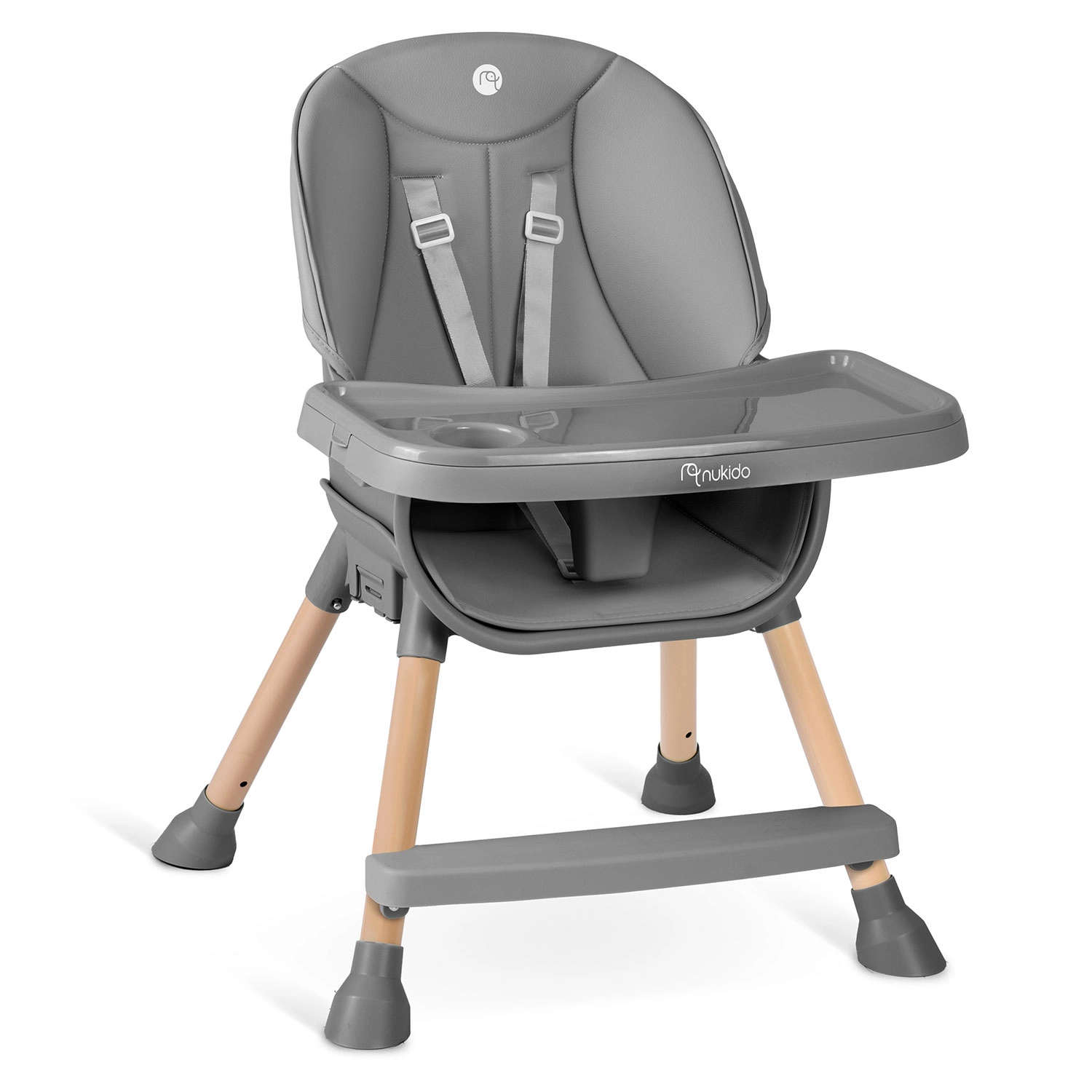 De NUKIDO Tilo 3-in-1 is een multifunctionele kinderstoel die comfort, veiligheid en eenvoudig onderhoud combineert. Dankzij het doordachte ontwerp pas je hem moeiteloos aan verschillende ontwikkelingsfasen en activiteiten aan – van tafelen tot spelen aan een lage tafel. Het afneembare blad met opstaande rand en inzet vereenvoudigt het dagelijkse schoonmaken, terwijl de zachte bekleding van vuilafstotend materiaal slechts hoeft te worden afgenomen.