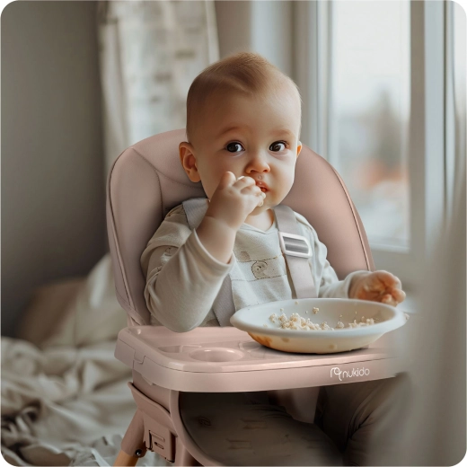 Eén stoel, drie gebruiksmogelijkheden. Pas de NUKIDO Tilo aan de leeftijd en activiteiten van je kind aan – van voeden tot spelen aan tafel.