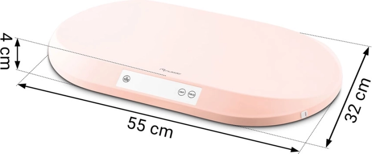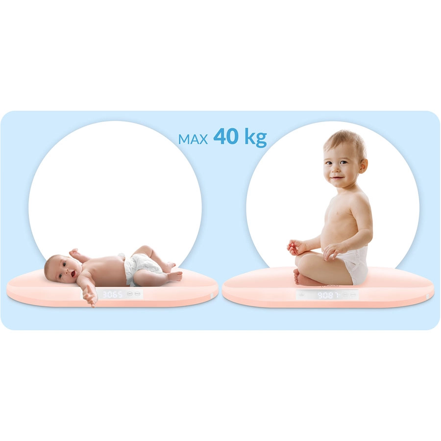 De weegschaal biedt overzichtelijke bediening, een handmatige HOLD-functie om stabiele resultaten vast te leggen bij beweeglijke kinderen, de TARE-functie voor wegen met onderlegger of luier en keuze van eenheden (gram, kilogram, ounce, pond). Dankzij de draagkracht tot 40 kg gebruik je de weegschaal langdurig – van pasgeborene tot op schoolleeftijd. Het geïntegreerde meetlint maakt bovendien controle van hoofdomtrek en lichaamsmaten tot 150 cm mogelijk.