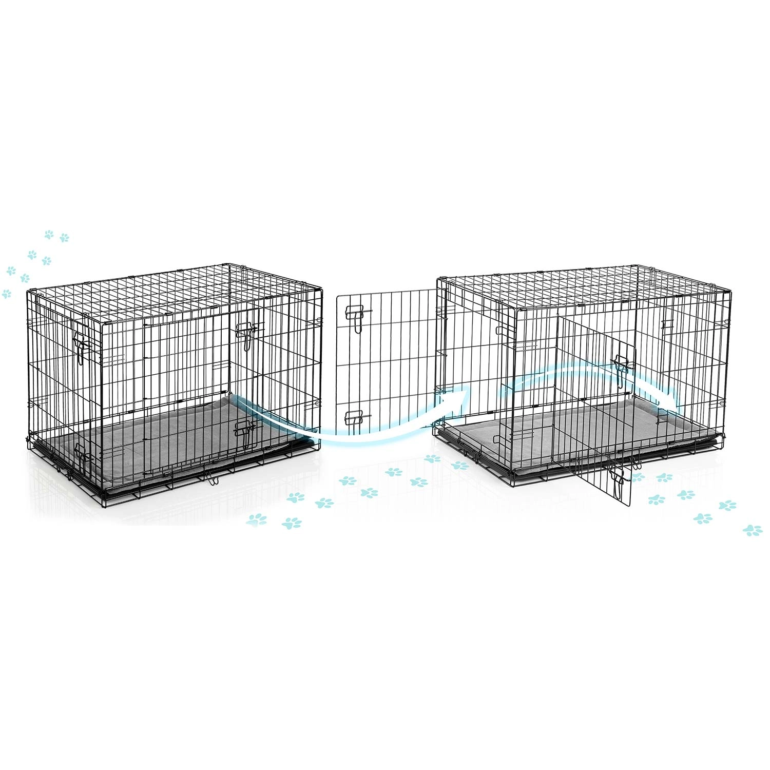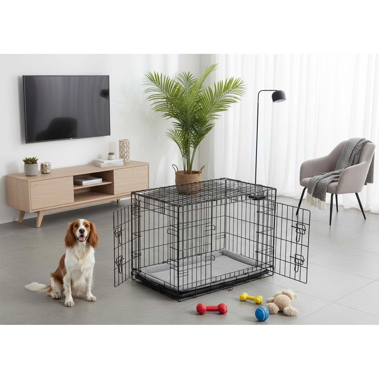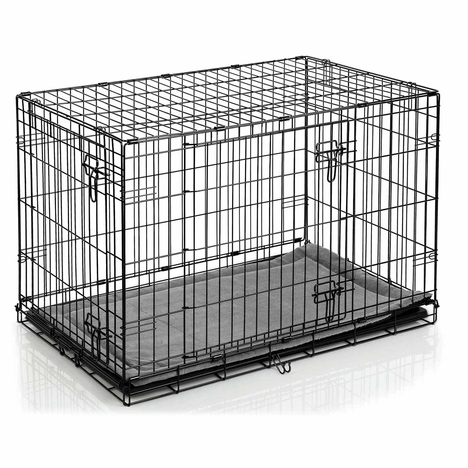 Deze metalen bench voor honden in maat M combineert een stevig stalen frame met doordachte details voor dagelijks gebruik. Twee deuren, aan de zijkant en voorkant met betrouwbare grendels vergemakkelijken de plaatsing in huis en zorgen voor veilige afsluiting. De uitneembare kunststof lekbak maakt snel reinigen en optimale hygiëne mogelijk. In de verpakking zit ook een comfortabele mat die het rustcomfort verhoogt.