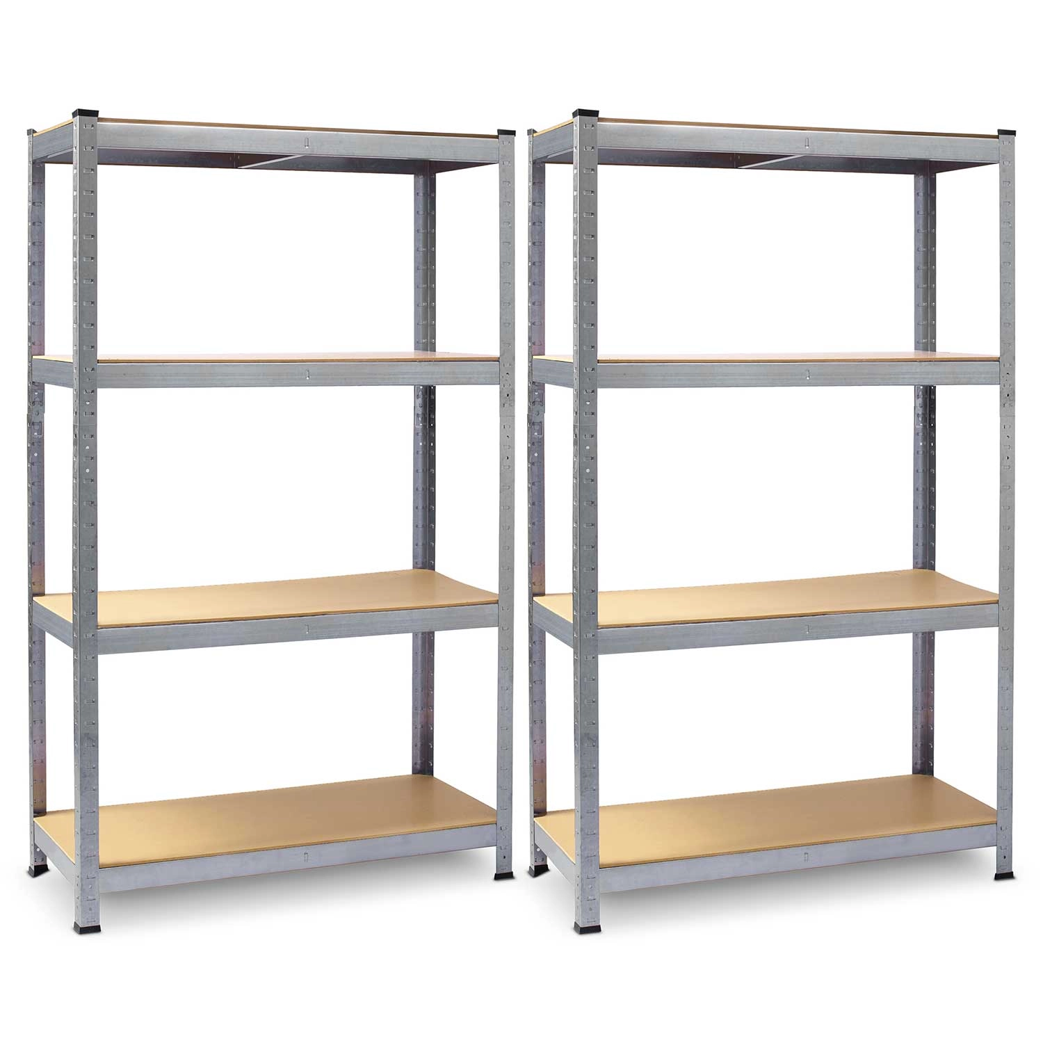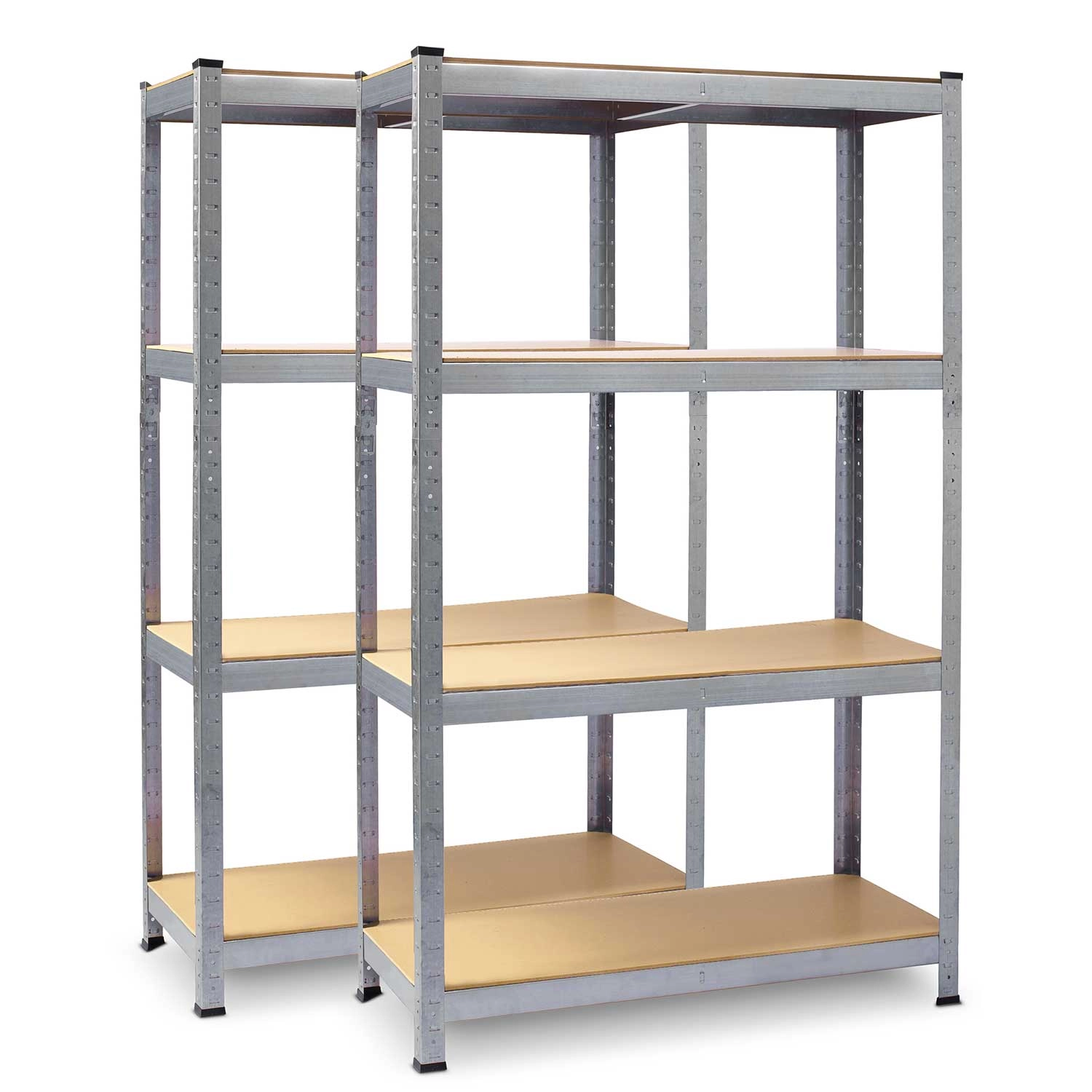 Deze set van 2 robuuste opslagschappen met verzinkte afwerking is ideaal voor het overzichtelijk opbergen van gereedschap, bakken en archiefdozen. Elke kast heeft 4 duurzame MDF-legborden (dikte 3,3 mm) met centrale verstevigingen en een draagvermogen tot 135 kg per legbord, zodat ook zwaardere uitrusting geen probleem is.