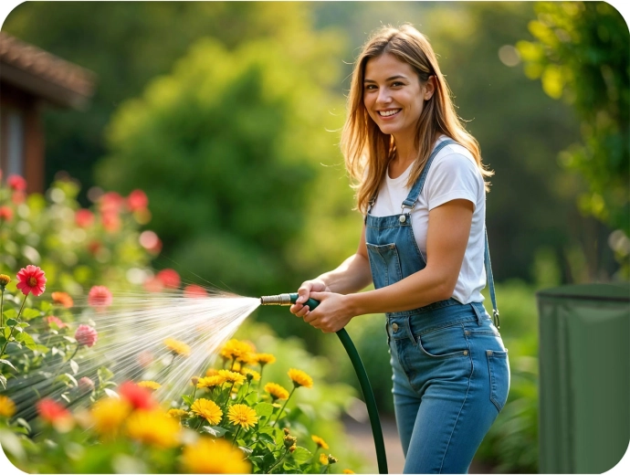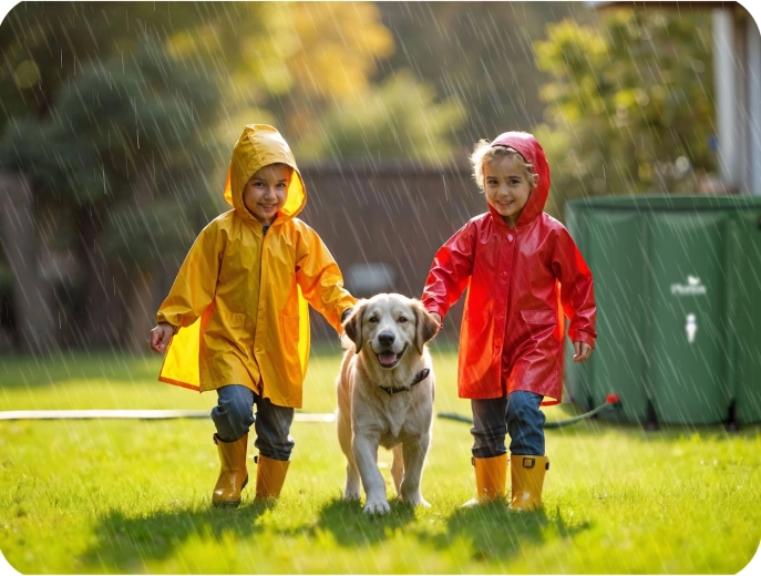 - Besparing tot 50% op waterkosten in het seizoen door gebruik van regenwater.